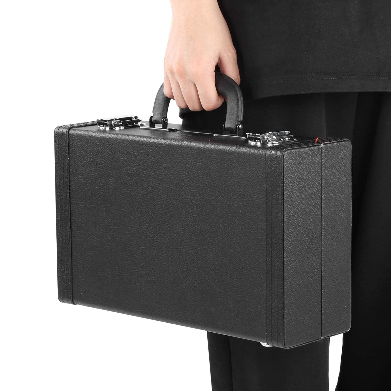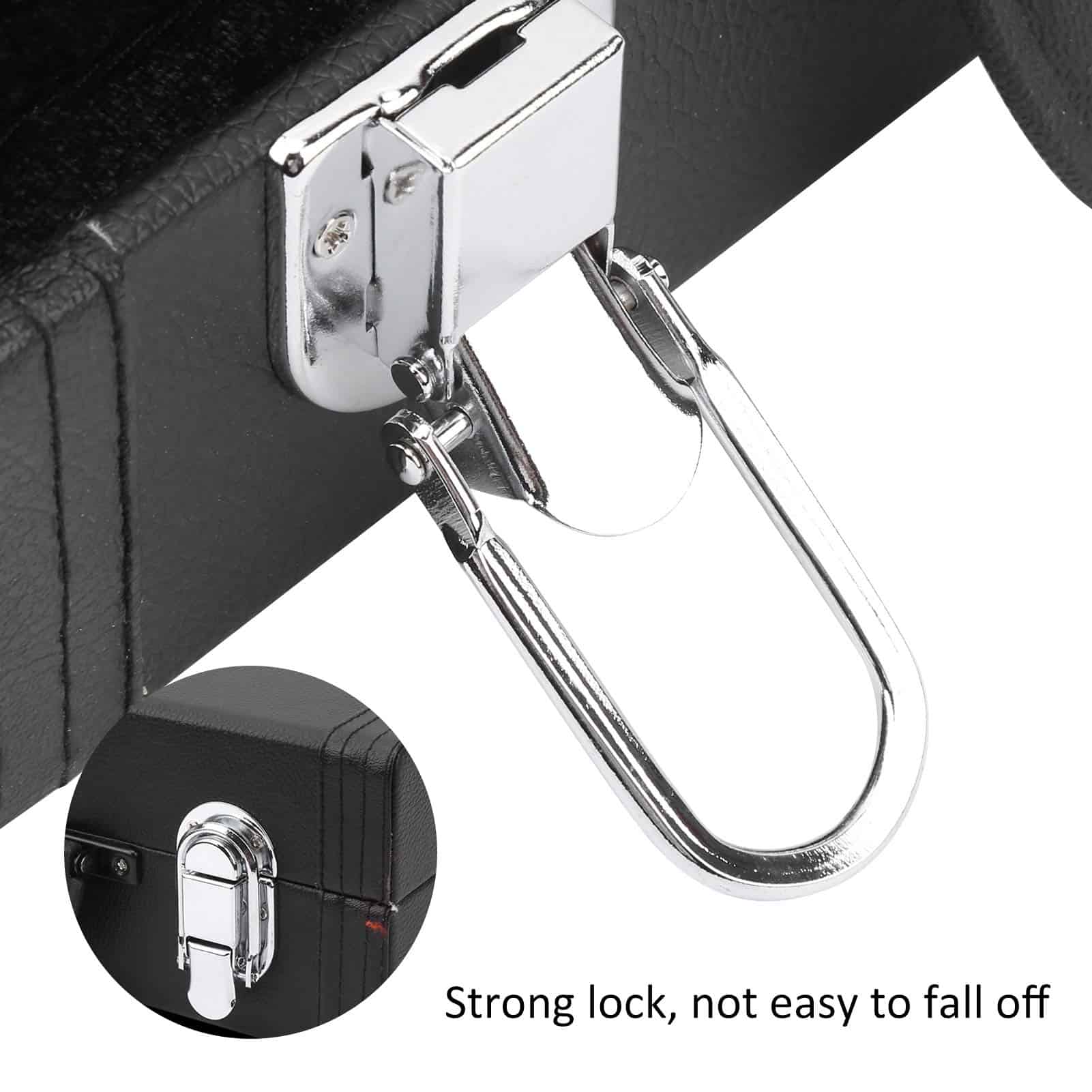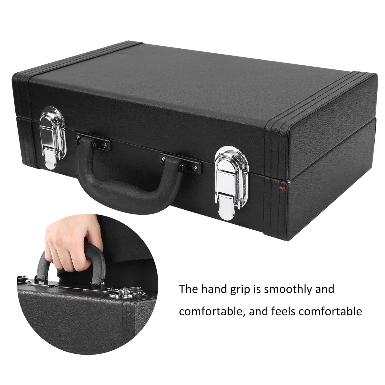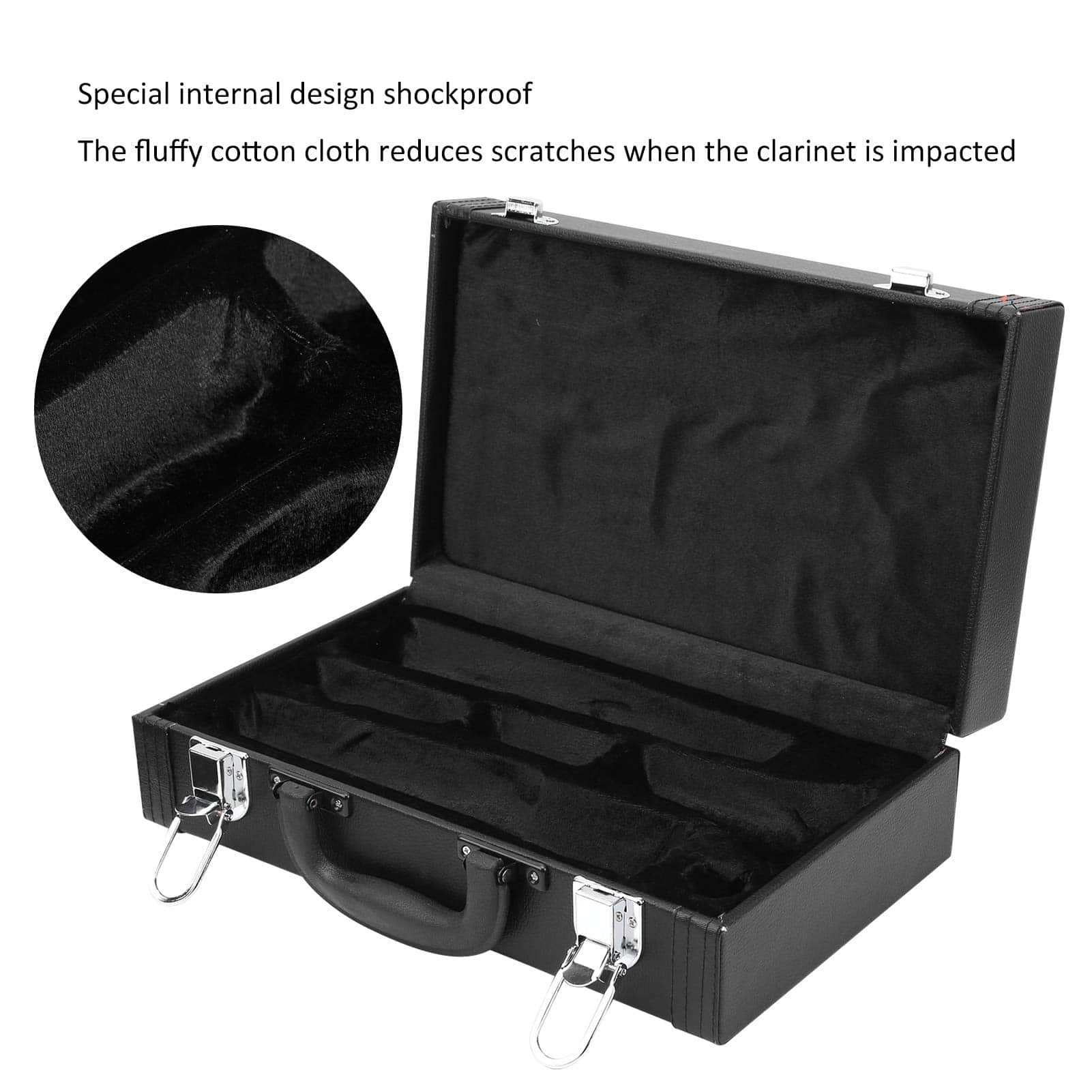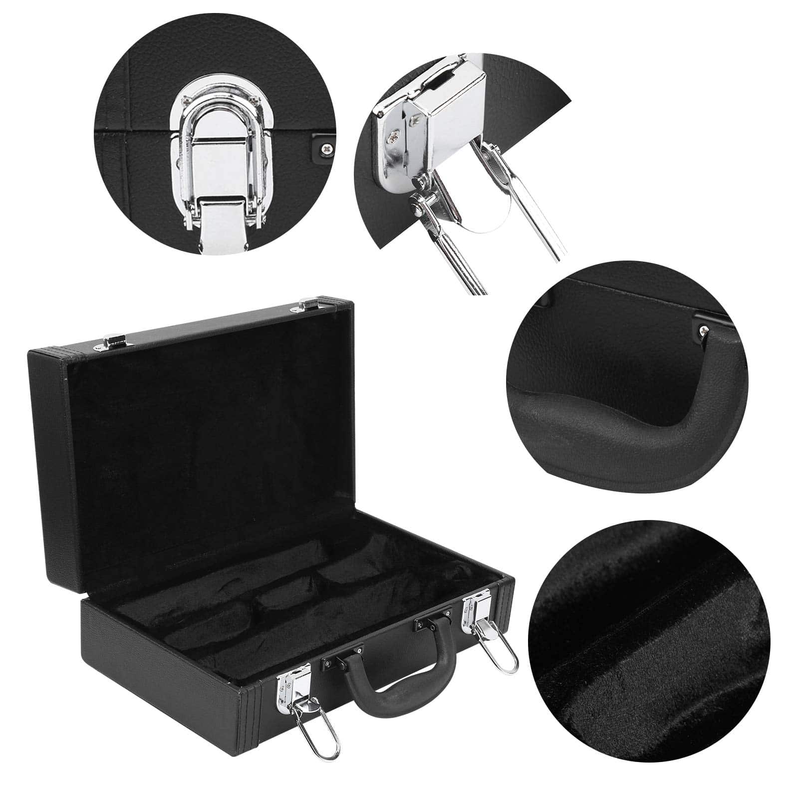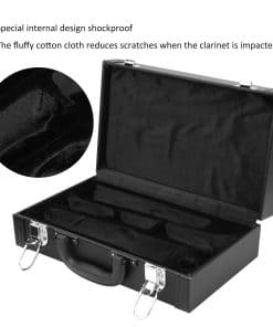Característica: 1. La apariencia es simple y elegante, el diseño interno especial es a prueba de golpes, y la tela de algodón mullido reduce los arañazos cuando el clarinete sufre un impacto. 2. Hay cuatro clavos en la parte inferior para reducir el polvo cuando la caja toca el suelo. 3. El asa de transporte es suave y cómoda, y se siente cómodo al transportar el clarinete. 4. El estuche con cierre fuerte no es fácil de soltar, lo que proporciona un mayor nivel de seguridad. 5. Control de calidad estricto y garantía de calidad, alto factor de seguridad, se puede utilizar con tranquilidad. Especificación: Tipo de Artículo: Estuche de Clarinete Material: Cuero sintético + tela de algodón mullido + metal Color: Negro Lista de Paquete: 1 x Estuche de Clarinete