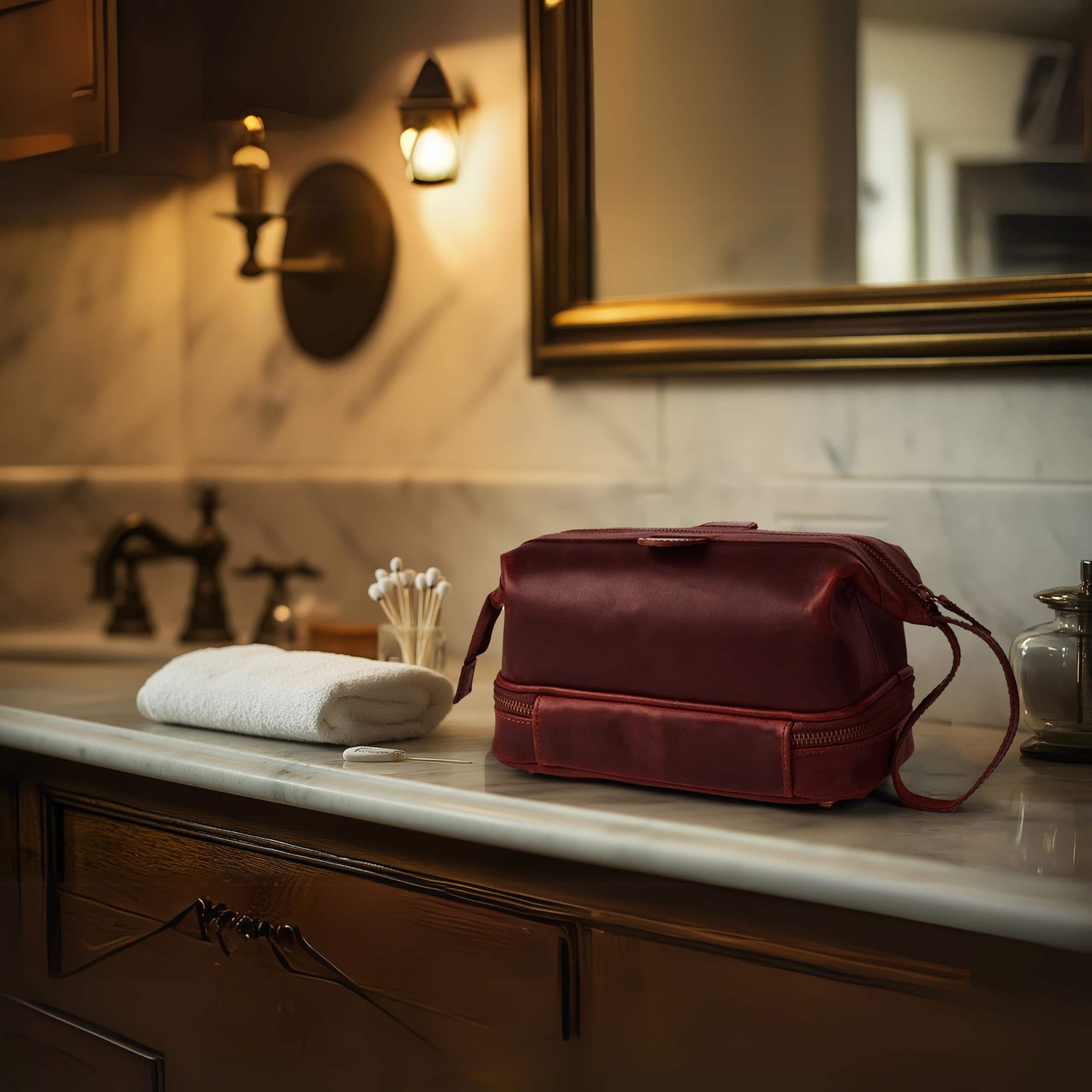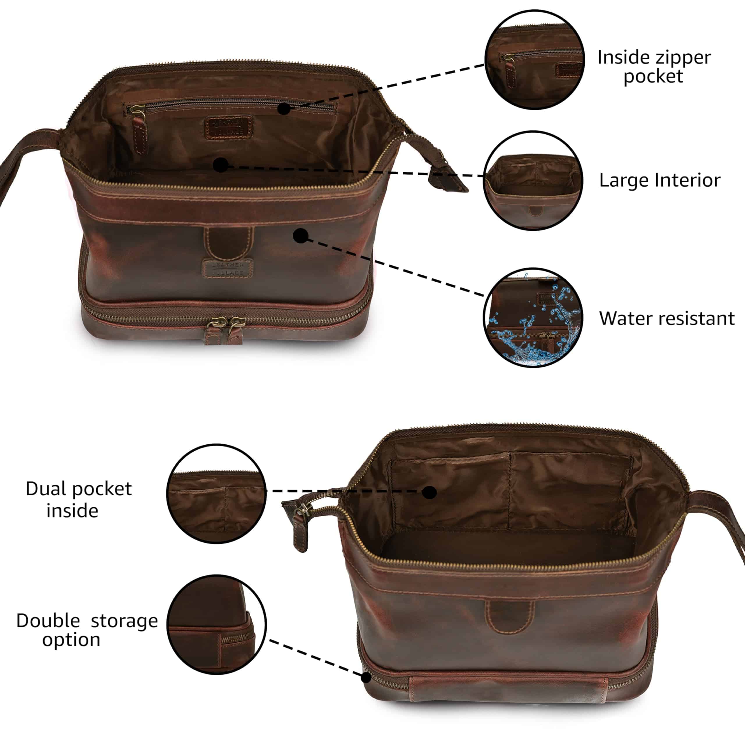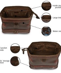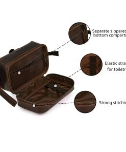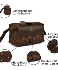 1. Cuero de búfalo premium de grano completo: Hecho a mano por artesanos habilidosos, nuestra bolsa de aseo ofrece una durabilidad y lujo incomparables.