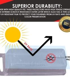 ¡Mantenlas como nuevas!Protege tu figura vintage favorita y más preciada de todo tipo de arañazos, humedad, luz solar, polvo y caídas accidentales. Los estuches protectores de Evoretro están específicamente hechos para estos tesoros, lo que lo convierte en una excelente elección para el coleccionista ávido en busca de la mejor protección disponible en el mercado actual.Detalles del Producto:Material rígido PETTransparente para una fácil organizaciónResistente a los arañazosResistente a la luz UVAyuda a repeler el polvo, la suciedad y la humedad50 protectores por pedidoFiguritas no incluidasNo es compatible con la serie Gi Joe Renegade y la figura de 1992 de BatmanExperiencia 100% sin riesgos¡Garantizamos la satisfacción del cliente al proporcionar la más alta calidad en el mercado!Nuestros clientes son nuestra prioridad y simplemente te brindamos el mejor producto y servicio. Estamos tan seguros de la calidad de nuestros productos que te ofrecemos una garantía de un año.¡Así que no esperes más!¡Sabemos que nuestros productos son perfectos para tus necesidades!¡Haz clic en Añadir al carrito AHORA para obtener el tuyo!