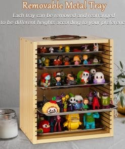 El estuche de exhibición en miniatura incluye 5 bandejas magnéticas de metal que pueden fijarse con objetos magnéticos, lo que te permite fijar tus modelos con imanes en la bandeja. Las bandejas de metal se deslizan fácilmente dentro y fuera, permitiéndote ajustar la altura de cada nivel según tus necesidades. Este diseño mantiene tu colección de manera más segura y te permite acomodar más miniaturas en una caja. Viene con un cómodo asa de cuero resistente en la parte superior y un destornillador para la instalación fácil y mantiene el polvo fuera para que tu colección siempre luzca como nueva. Perfecto para almacenar cualquier tipo de coleccionable, como figuras pop, figuras de vinilo, muñecos, joyas y piedras de cristal, etc. Ideal para regalar en cualquier ocasión especial.