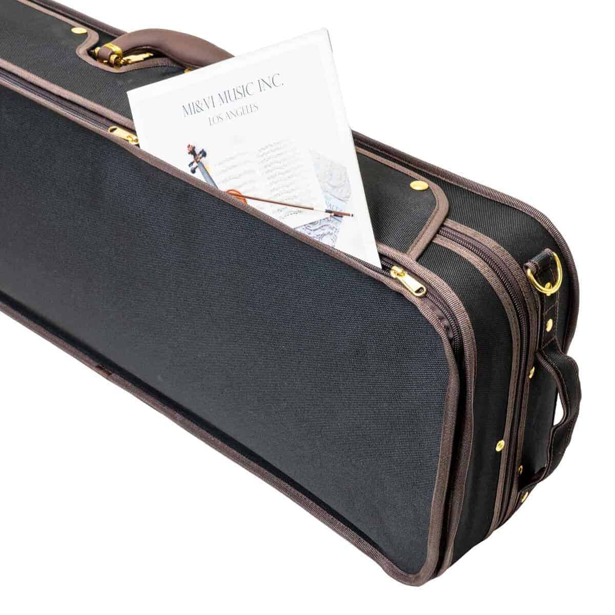1. ARTESANÍA DE LUJO – Los estuches de viaje de viola de madera MIVI están diseñados individualmente con madera dura, resistente tela de nylon impermeable y suave forro interior de terciopelo azul para prevenir rayones y marcas en los instrumentos de viola clásicos. 2. RESISTENTE Y LIGERO – Nuestro estuche de viaje para viola MIVI está diseñado por músicos con material de la más alta calidad resistente a la intemperie hecho para proteger nuestros costosos instrumentos clásicos. Ofrecemos una amplia selección de instrumentos y estuches en diversas tallas, materiales y niveles de protección. 3. PARA VIOLAS DE 15″ A 16.5″ – Este estuche es compatible con violas de 15″ a 16.5″ según sea necesario. Con correas para llevar en el hombro que se convierten en bolso de transporte y durables cierres de cremallera para facilitar el transporte a distancias más largas. Hecho para adaptarse a todas las marcas y modelos de violas clásicas y eléctricas de tamaño completo. 4. BOLSILLOS ESPACIOSOS – El estuche de viola tiene capacidad para cuatro arcos, un bolsillo trasero de longitud completa para partituras, un compartimento adicional en el interior para guardar colofonia, reposo de hombro y otros accesorios de instrumentos. 5. GARANTÍA DE MIVI MUSIC – Creemos que cada músico es parte de nuestra familia y confiamos en la calidad de nuestros productos; por eso hemos extendido nuestra garantía de devolución sin complicaciones de 90 días en este producto de MIVI Music.