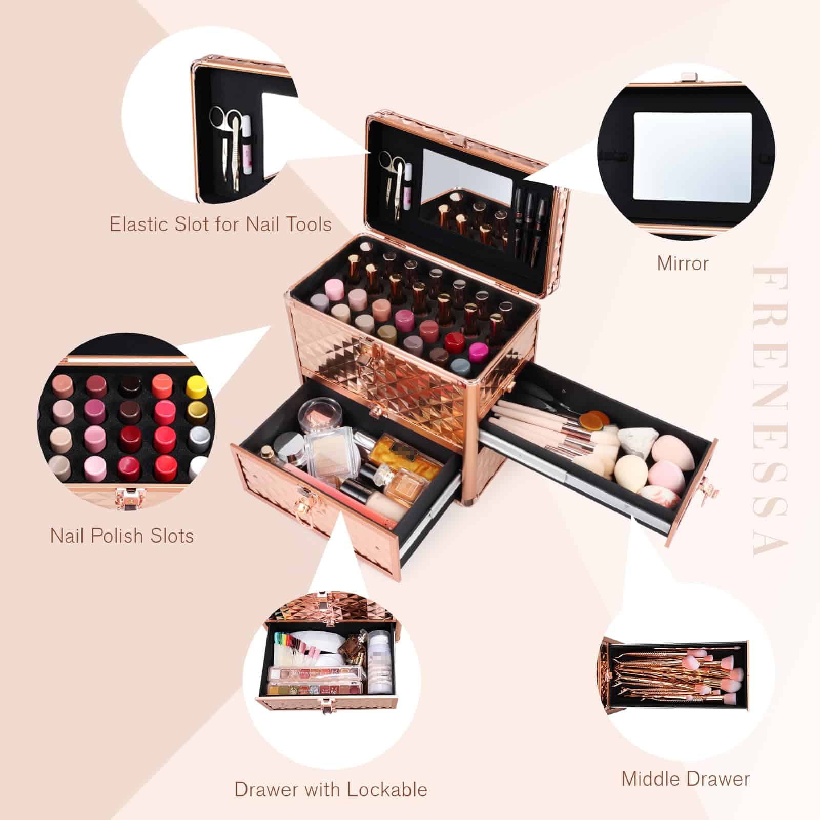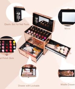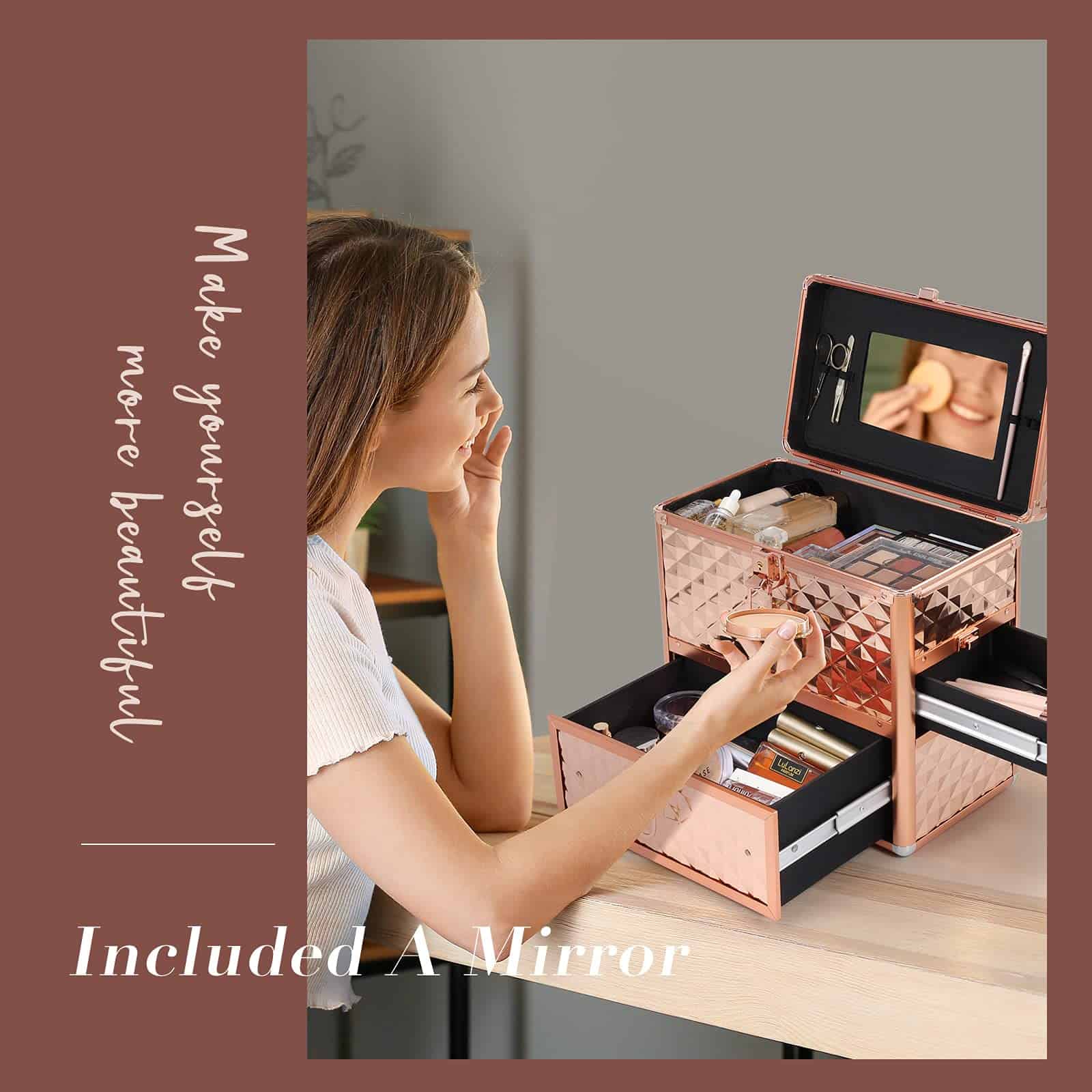 Estuche de Maquillaje Profesional con Espejo y Cajón,