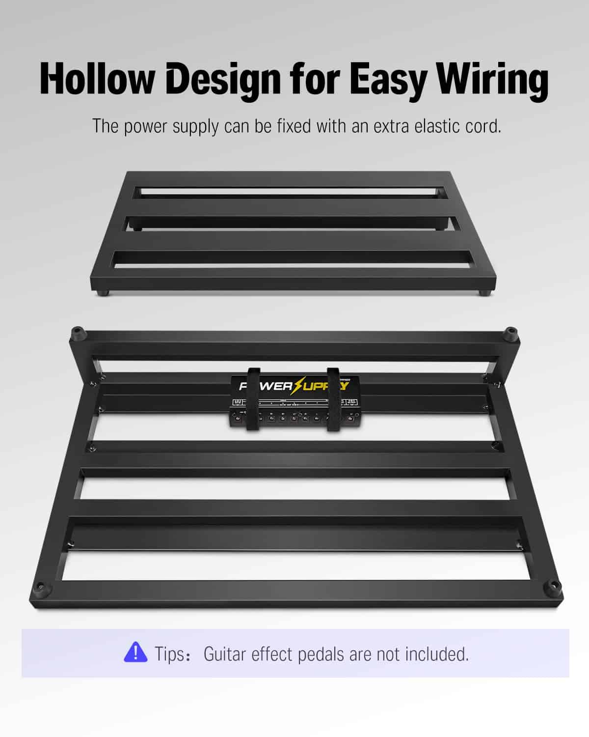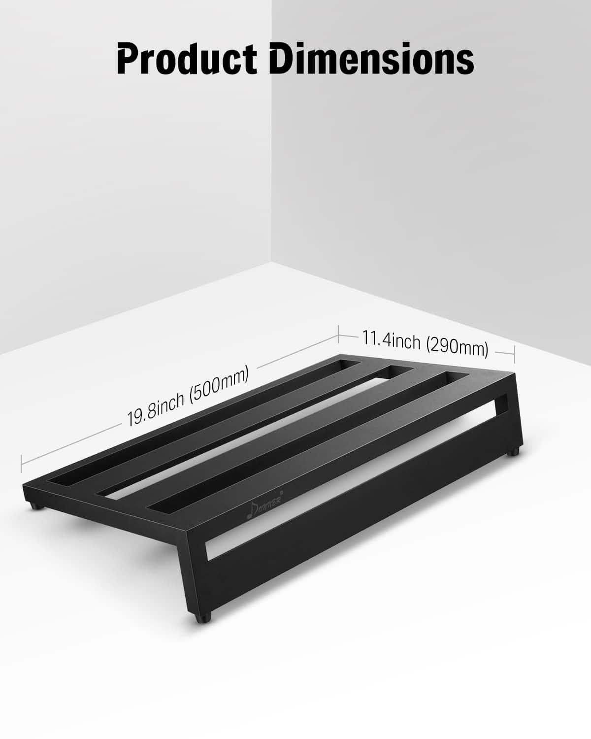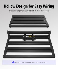 Las pedaleras Donner utilizan material de aleación de aluminio portátil, la pedalera de aluminio ligero le permite actuar sin presión. El DB-3 tiene un diseño hueco que permite la disposición conveniente de los cables; además, su forma única de fijar la fuente de alimentación mediante el uso de una cuerda elástica adicional. La pedalera se adapta a cualquier volumen de fuente de alimentación: Donner DP-1/DP-2, T-rex, VoodooLab, etc. Todo tipo de fuentes de alimentación se pueden fijar fácilmente en la parte inferior de esta pedalera con un hebilla. ¡Sí, así de simple! También obtiene una resistente bolsa de lona que transporta de forma segura sus pedales de concierto en concierto. Se incluyen 60 ganchos y lazos adhesivos de grado profesional para asegurar pedales y bridas. PD: El Velcro y la Hebilla de la Pedalera se envían como regalo gratis. Especificaciones: Dimensiones: 20 x 11.4 x 4 pulgadas (500 x 290 x 100 mm) Material: Aleación de aluminio Peso neto: 1150 g (sin bolsa) Color: Negro. Paquete incluido: 1 x Pedalera DB-3, 1 x Bolsa de lona, 2 x Velcro de Pedalera de 60, 2 x Hebilla