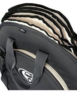 1. Este estuche aceptará platillos de 24″. 2. El compartimento exterior aceptará Hi-Hats de 15″. 3. Este estuche tiene separadores removibles en el perfil en los compartimentos principal y exterior. Separe 4 platillos en cada compartimento. 4. La base del estuche tiene un protector de poli-pro de 12″ cosido entre el exterior y el interior para que sus platillos no atraviesen la base. 5. Correa acolchada y completamente ajustable.