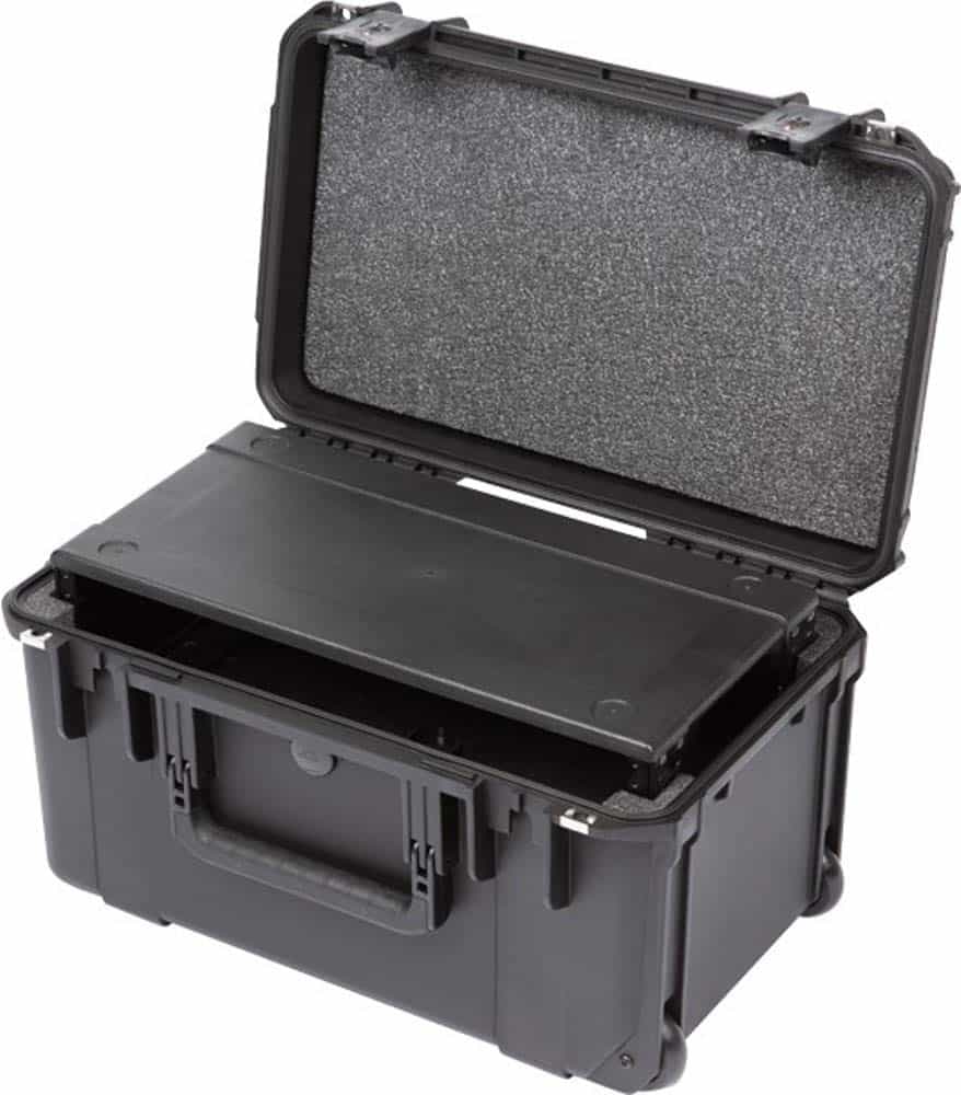 Una forma revolucionaria de transportar tu equipo inalámbrico. Transporta tu equipo de rack y transmisores inalámbricos de forma segura y fácil con el estuche Fly Rack 3i-2011M103U iSeries de SKB. Dentro de este resistente estuche de resina de copolímero de polipropileno se encuentra una jaula de rack de choque removible de 3U. Un interior de espuma con corte personalizado protege tus transmisores inalámbricos y transmisores de cuerpo de golpes y abolladuras durante el transporte. Este increíble estuche también es resistente a la luz UV, hongos y solventes corrosivos. En el improbable caso de que este estuche caiga al agua, un diseño completamente sellado con empaques garantiza que tu equipo no se moje. El estuche también cuenta con dos pestillos de liberación por gatillo aceptables por la TSA, y su diseño resistente al agua se autoequilibra a la presión del agua en caso de que caiga de forma desafortunada. Ruedas convenientes en línea y un asa de liberación con botón también facilitan el transporte por el terminal o el escenario, características que realmente apreciamos aquí en GearNuts. Protección sin compromiso de SKB.