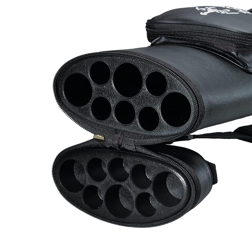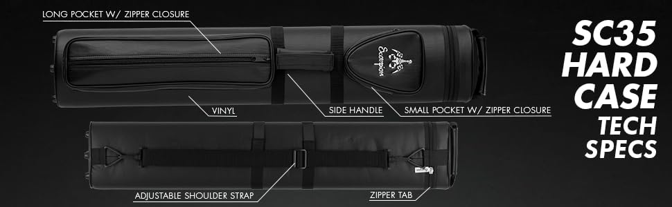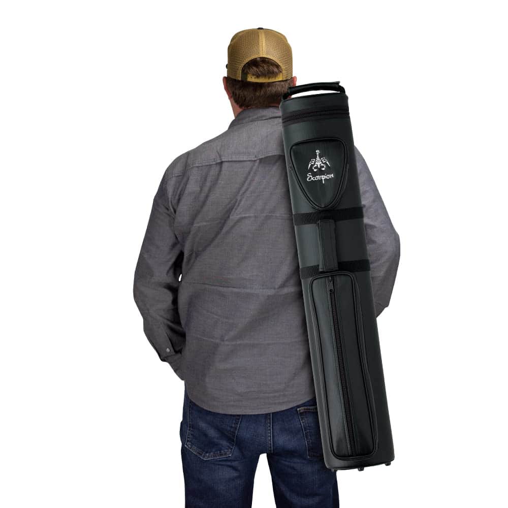Negro con logotipo de Scorpion blanco bordado en la parte superior del estuche tubular. 3 culatas/5 flechas. Longitud total de 33.5″. Bolsillo de accesorios de 5″x6″ (en el punto más grande). Bolsillo de accesorios grande de 4″x16″. Tiene asa superior, asa central y correa trasera pequeña