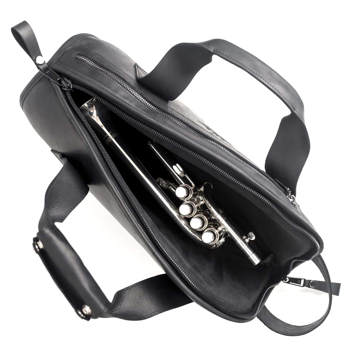 Este estuche para trompeta combina atractivo visual con un diseño práctico y funcional. Dado que sus dimensiones se ajustan al límite de tamaño para equipaje de mano y se puede colocar en el espacio debajo del asiento, este estuche es perfecto para viajes en avión. El suave forro en el interior protege sus instrumentos de daños, mientras que el cuero Crazy Horse en el exterior actúa como una barrera contra la humedad y los impactos externos negativos.