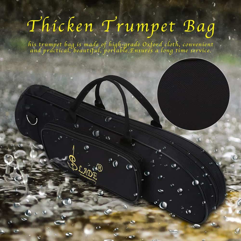 1. TELA OXFORD: Hecho de tela Oxford de alta calidad, esta bolsa de trompeta es conveniente y práctica, bonita, portátil. También puede proporcionar un largo tiempo de servicio.
