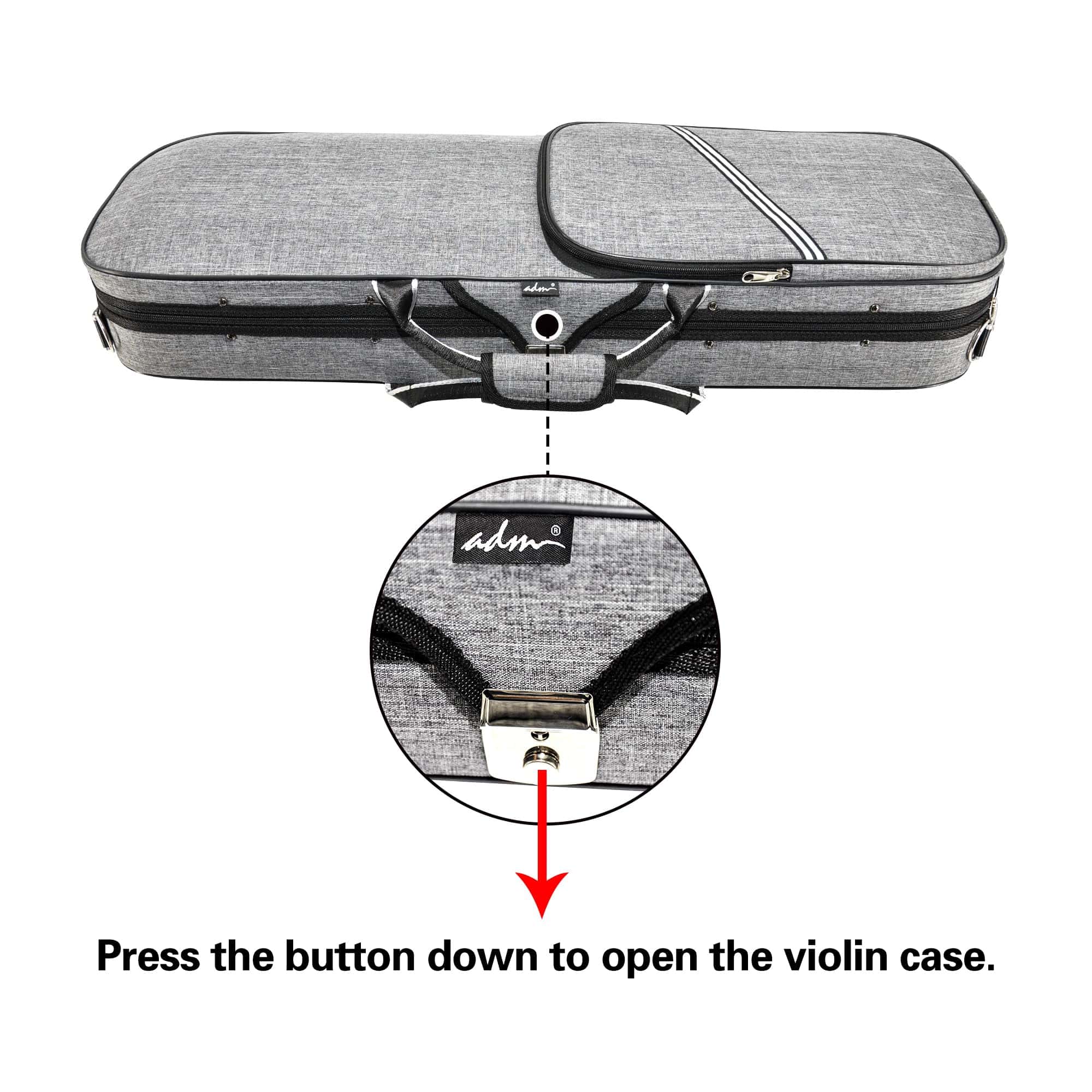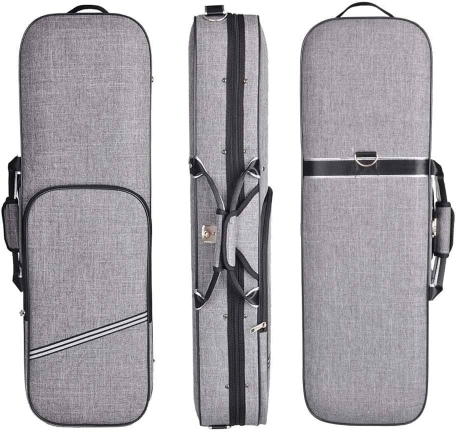 Estuche de violín oblongo completamente nuevo de la marca ADM, características deseables aún así es ligero y duradero. Exterior impermeable de tela oxford con un sólido y ligero marco de espuma anti-impactos, hermoso revestimiento de terciopelo de lujo en el interior. Especificaciones: Tipo: Estuche de violín Forma: Oblongo Tamaño: 4/4 Full Size Material del estuche: Espuma Exterior: Cubierta de tela oxford repelente al agua con bolsillo de partituras de media longitud Interior: Interior de terciopelo negro con característica de suspensión, Hebilla de cuello de velcro, caja de accesorios de tamaño amplio Una manta de instrumento a prueba de polvo para protección adicional Material del asa: Tela oxford 2 correas de hombro ajustables 2 soportes para arco Higrómetro para control de la humedad Peso: 3 libras, súper ligero para viajar Longitud total: 39 pulgadas, tamaño completo Sobre nosotros: All Days Music Inc. (ADM), se inició con el principio de que los instrumentos musicales de nivel de entrada o de estudiante deben tener una calidad jugable y agradable para asegurar el éxito y la diversión de la persona que persigue un instrumento.