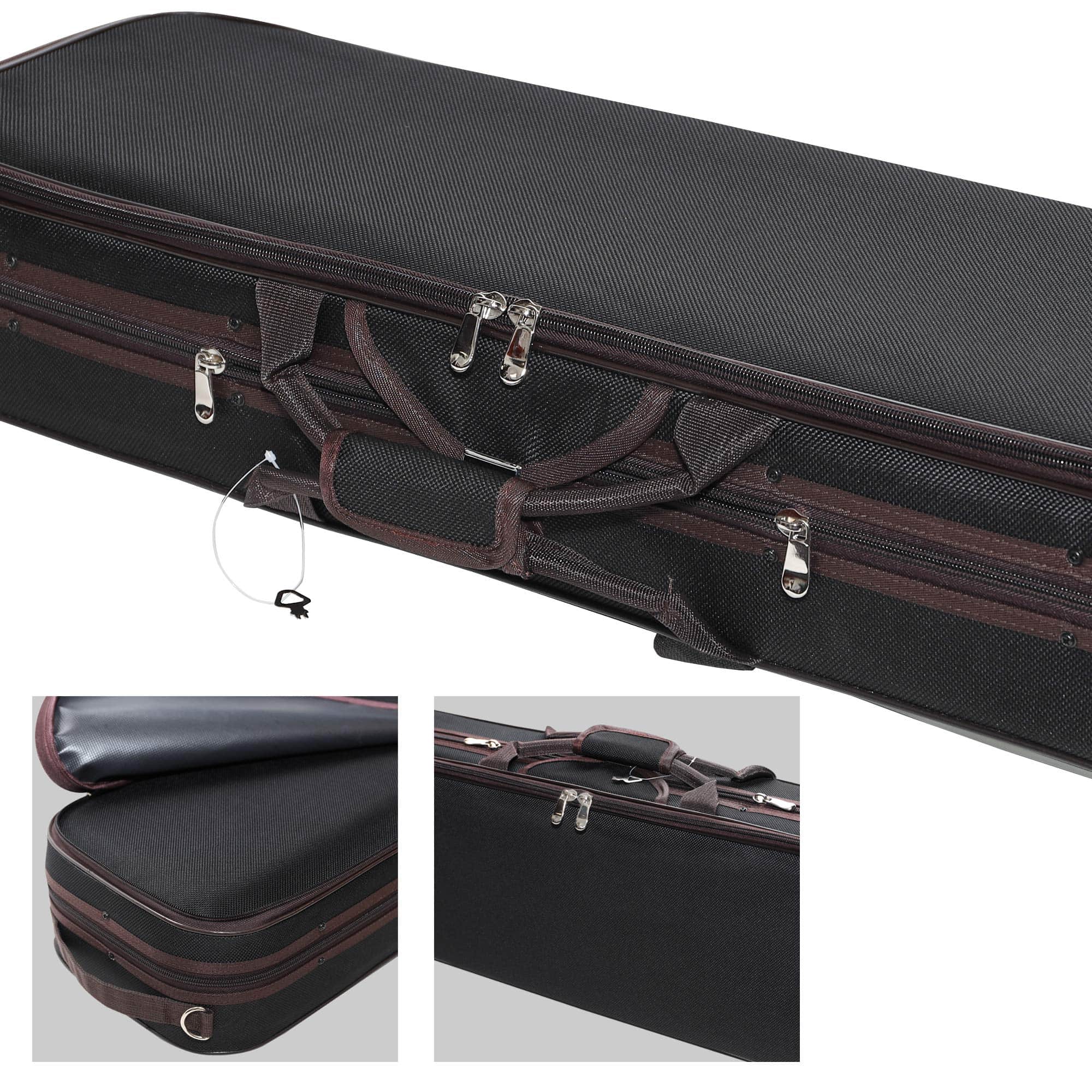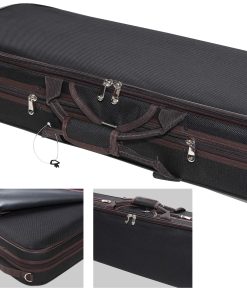 1. ESTUCHE DE VIAJE RESISTENTE – Los estuches de violín MIVI Hard Shell están diseñados individualmente con espuma de poliuretano de alta densidad que absorbe los golpes, una resistente capa de lluvia de nylon no abrasivo y un suave forro interior de terciopelo marrón no abrasivo para evitar arañazos y marcas en el acabado de los instrumentos de violín clásicos. 2. 3.6LB EL MÁS LIGERO DEL MERCADO – Nuestro Estuche de Violín MIVI está diseñado por músicos como uno de los estuches de violín más ligeros del mercado, lo que facilita su transporte y permite viajar a distancias y tiempos más largos. 3. DISEÑO DE SEGURIDAD REFLECTANTE – Con cinta de seguridad plateada reflectante en el exterior, para una protección adicional. Incluye correas ajustables para el hombro que se convierten en mochila y cremalleras duraderas que no rayan. Hecho para adaptarse a todos los modelos de violines clásicos y eléctricos de tamaño completo 4/4. 4. MULTIPLES BOLSILLOS – Cada uno de nuestros estuches de instrumentos de violín cuenta con 2 soportes de arco convenientes, un bolsillo trasero de longitud completa para sostener partituras y un compartimento de almacenamiento interior adicional grande para sostener colofonia, apoyos de hombro y otros accesorios de instrumentos. 5. LA GARANTÍA DE MIVI MUSIC – Creemos que cada músico es parte de nuestra familia y confiamos en la calidad de nuestros productos; por eso hemos extendido nuestra garantía de devolución sin problemas de 90 días en este producto de MIVI Music.
