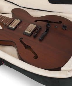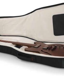 La serie Pro-Go G-PG-335V de estuches para guitarra de Gator Cases está diseñada para guitarras Gibson y Epiphone 335 o Flying V. El interior del estuche amortigua tu guitarra con paredes laterales ultra gruesas rodeadas de un lujoso forro de microfelpa para una protección de primer nivel. Un bloque de cuerpo interno acolchado y una cuna de cuello ajustable proporcionan un ajuste perfecto, así como una absorción adicional de impactos. El gran bolsillo de almacenamiento externo con correas para gestión de cables mantiene tus afinadores, púas, cuerdas, cables y otros accesorios almacenados y organizados de forma ordenada. Incluso tu dispositivo tablet y partituras pueden guardarse de forma segura en los bolsillos especializados adicionales. El estuche Pro-Go 335V está listo para enfrentar los elementos con una cubierta protectora para la lluvia incorporada que se guarda de forma ordenada en el bolsillo con cremallera cuando no está en uso. Este estuche de primera clase está listo para viajar con correas de mochila acolchadas removibles y multi-ajustables que se pueden adaptar a múltiples alturas para un ajuste cómodo y protección del clavijero de puertas no vistas. Si prefieres llevar tu estuche de forma manual, quita las correas de la mochila, guárdalas en el bolsillo delantero y agarra el asa de transporte reforzada. El estuche G-PG-335V de la serie Pro-Go de Gator proporciona una protección de lujo tipo estuche en un paquete elegante y funcional.