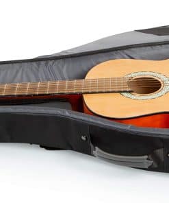 Estuche gig bag Levy’s 100-Series para guitarras clásicas con características diseñadas para brindar la máxima protección y comodidad durante el transporte. Este estuche cuenta con un relleno de espuma en todo el interior con tela gris para una protección superior contra golpes y arañazos. Las correas acolchadas y ajustables para mochila permiten llevar la guitarra de forma cómoda y segura. Las dimensiones exteriores e interiores específicas del instrumento garantizan un ajuste perfecto para guitarras clásicas. El diseño elegante en color negro hace que este estuche sea ideal para músicos que buscan funcionalidad y estilo. ¡Protege tu guitarra clásica con el estuche gig bag Levy’s 100-Series!