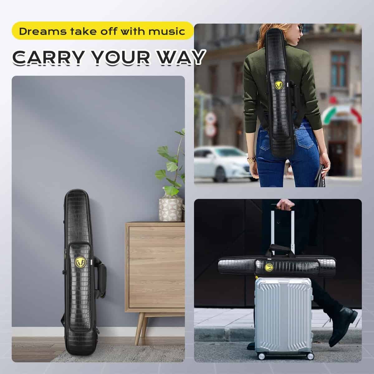 4. Ligero y portátil: Diseñado para ser ligero, el estuche para clarinete es fácil de llevar, lo que lo hace ideal para estudiantes y músicos profesionales para uso diario, ya sea asistiendo a clases, ensayos o presentaciones. Una variada paleta de colores está disponible para su selección.