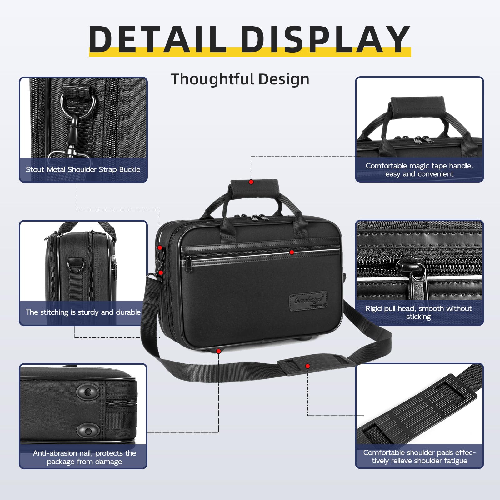Ya sea que sea un estudiante de música o un músico profesional, este estuche para clarinete es la elección ideal para uso diario, ya que es ligero y portátil. Además, las cremalleras de alta calidad garantizan una durabilidad excepcional, mientras que el diseño de uñas antidesgaste protege la bolsa de los rigores del uso diario. ¡Obtenga su estuche Omebaige hoy y transporte su clarinete con estilo y seguridad!