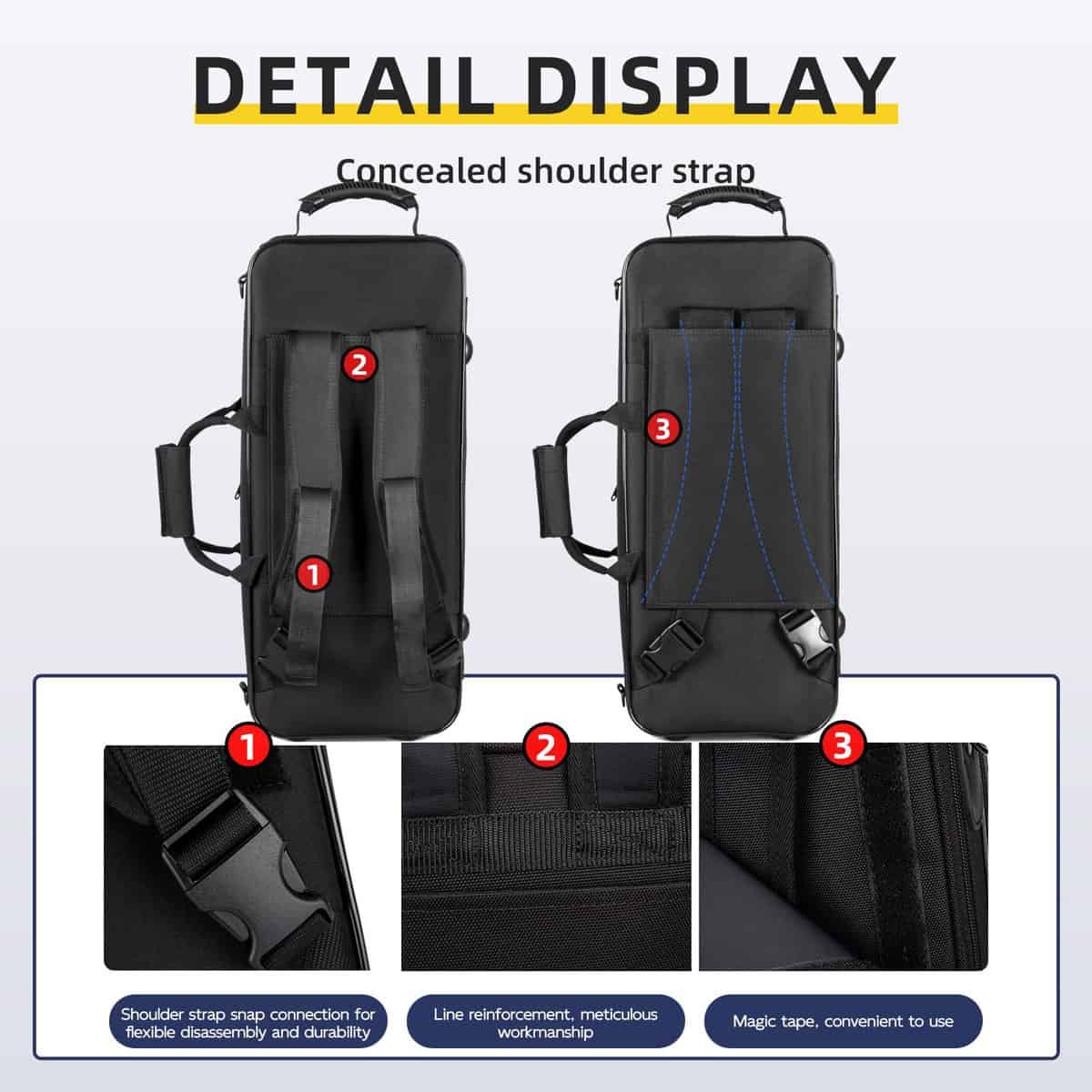 El estuche para saxofón alto Omebaige es la opción perfecta para proteger y transportar su saxofón alto. Con un diseño protector que incluye un exterior duradero y repelente al agua y un interior suave forrado con terciopelo, su instrumento estará seguro durante el transporte. Las múltiples opciones de transporte, como las correas de hombro cómodas y el asa, hacen que sea fácil de llevar a donde quiera que vaya. Además, el amplio espacio de almacenamiento en el interior del estuche y el bolsillo frontal grande le permiten llevar todos sus accesorios y partituras con comodidad. Ligero y portátil, este estuche es ideal para estudiantes y músicos profesionales que necesitan un estuche confiable y conveniente para llevar su saxofón alto a clases, ensayos y actuaciones.
