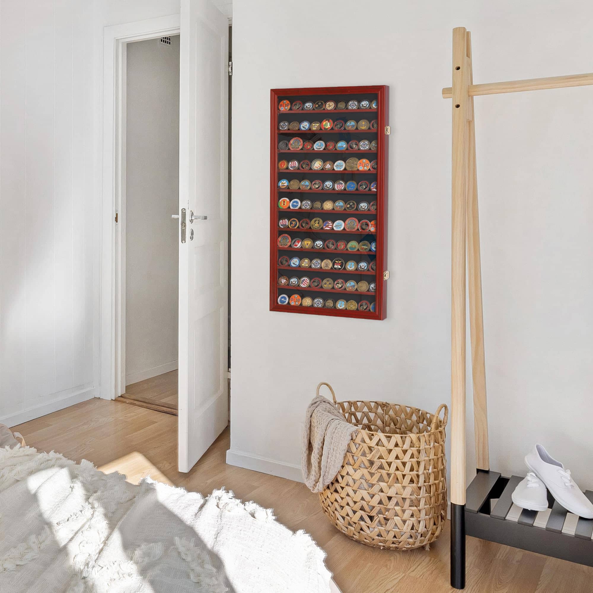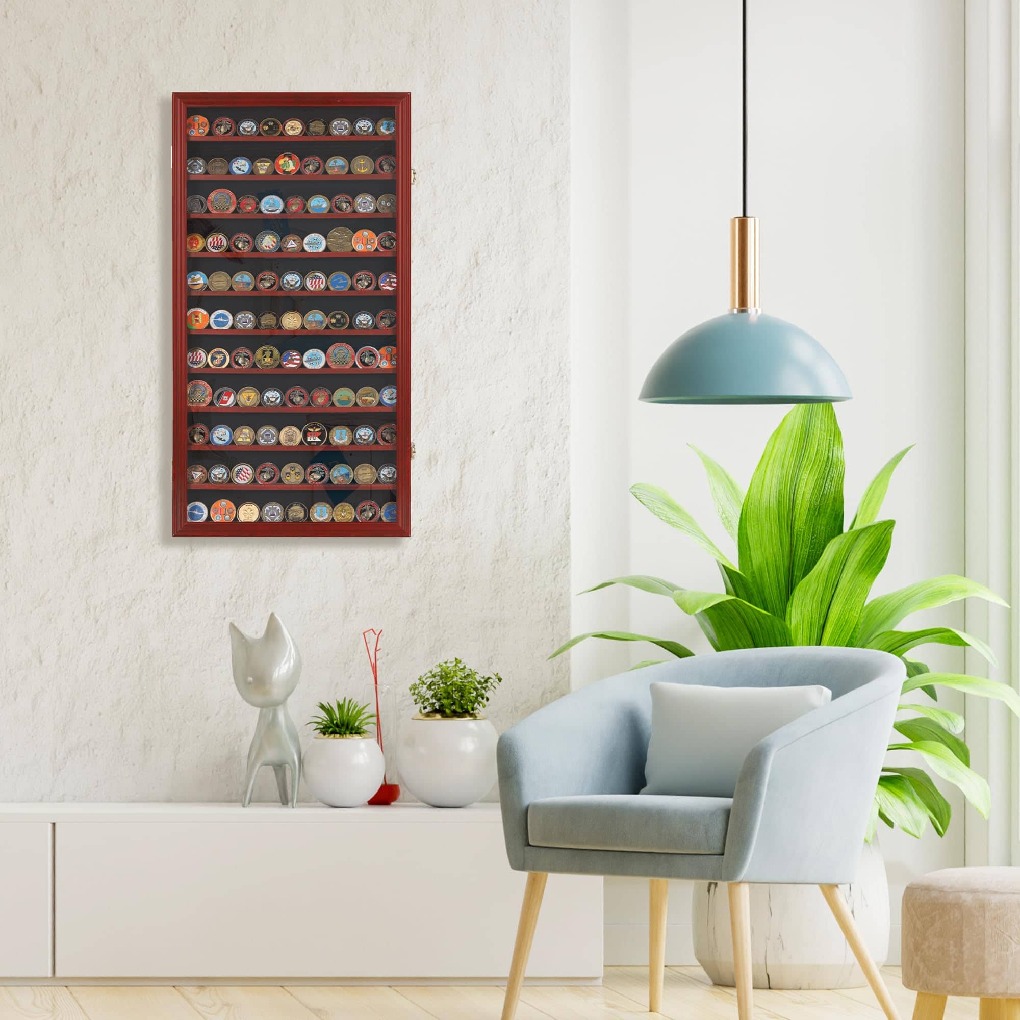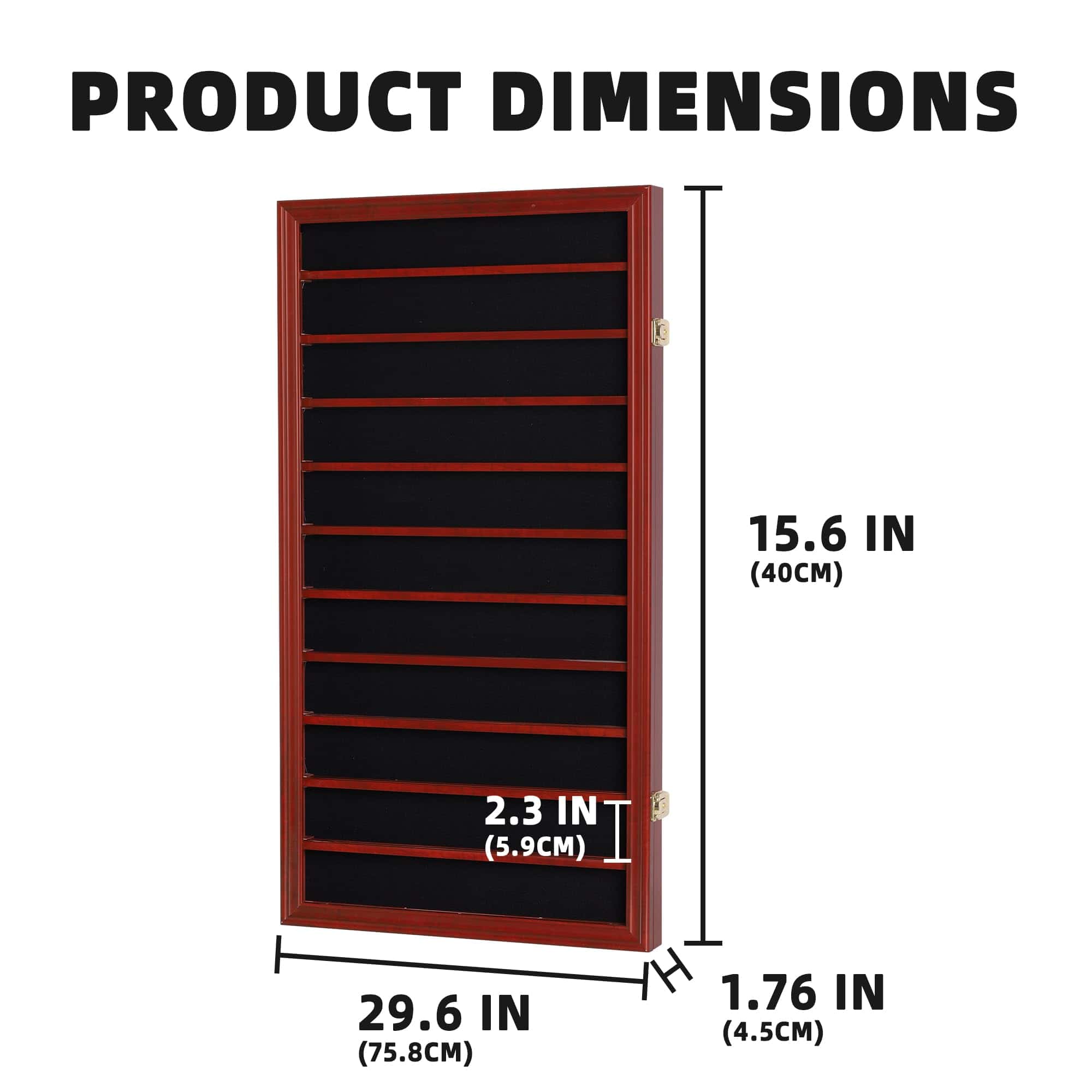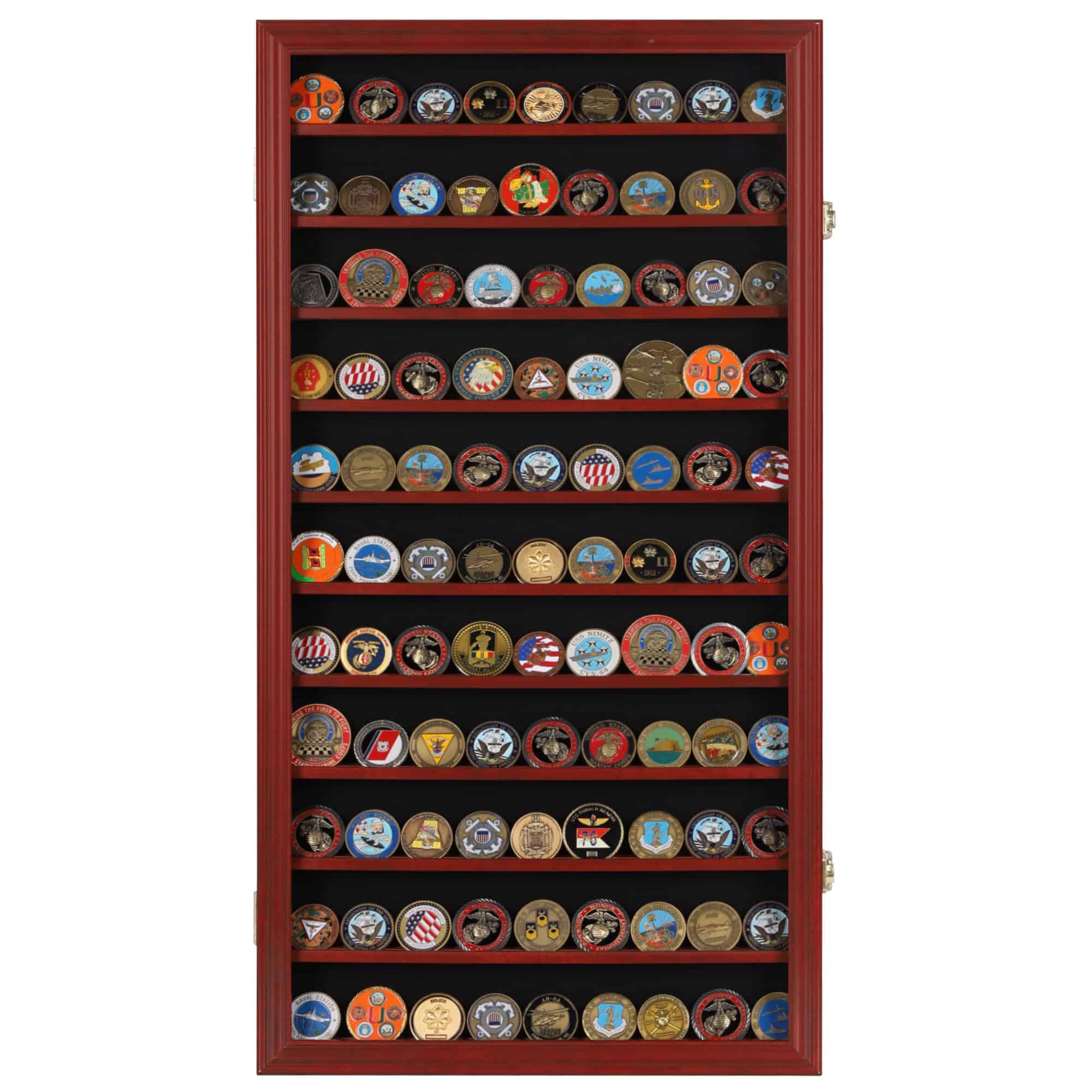 Estuche para monedas antiguas. También se puede utilizar como estuche de exhibición de fichas de casino. 11 estantes con surco para mantener las monedas en su lugar. Contiene monedas de desafío de tamaño estándar o fichas de póker con un diámetro de hasta 2″, con todos los estantes. Cada otro estante es removible para acomodar monedas de hasta 4″ de diámetro. Una excelente manera de exhibir monedas de varios tamaños, monedas de desafío militar y fichas de casino. Fondo forrado para crear una hermosa exhibición. Puerta con bisagras y cristal transparente. Hermoso cierre de puerta como se muestra en la imagen. Soportes de pared en la parte trasera: listos para colgar (montaje en pared). No más polvo con la protección de la puerta. Dimensiones: 29″H x 16″W x 1.75″D. Espacio entre filas: 2″. Con cada estante removible puedes colocar monedas de hasta 4″ de diámetro. No requiere montaje. DisplayGifts es la marca a elegir cuando buscas marcos de alta calidad diseñados para coleccionistas serios o principiantes. Tenemos años de experiencia en proporcionar estuches de exhibición de calidad protectora para todo tipo de coleccionables, desde artículos de recuerdo que recoges durante los viajes, hasta artículos que simplemente coleccionas como pasatiempos. Cada pieza de nuestros productos de exhibición está hecha a mano con prioridad en la calidad. Nuestros productos están bien embalados por UPS estándar para asegurarnos de que lleguen a salvo a tu puerta.