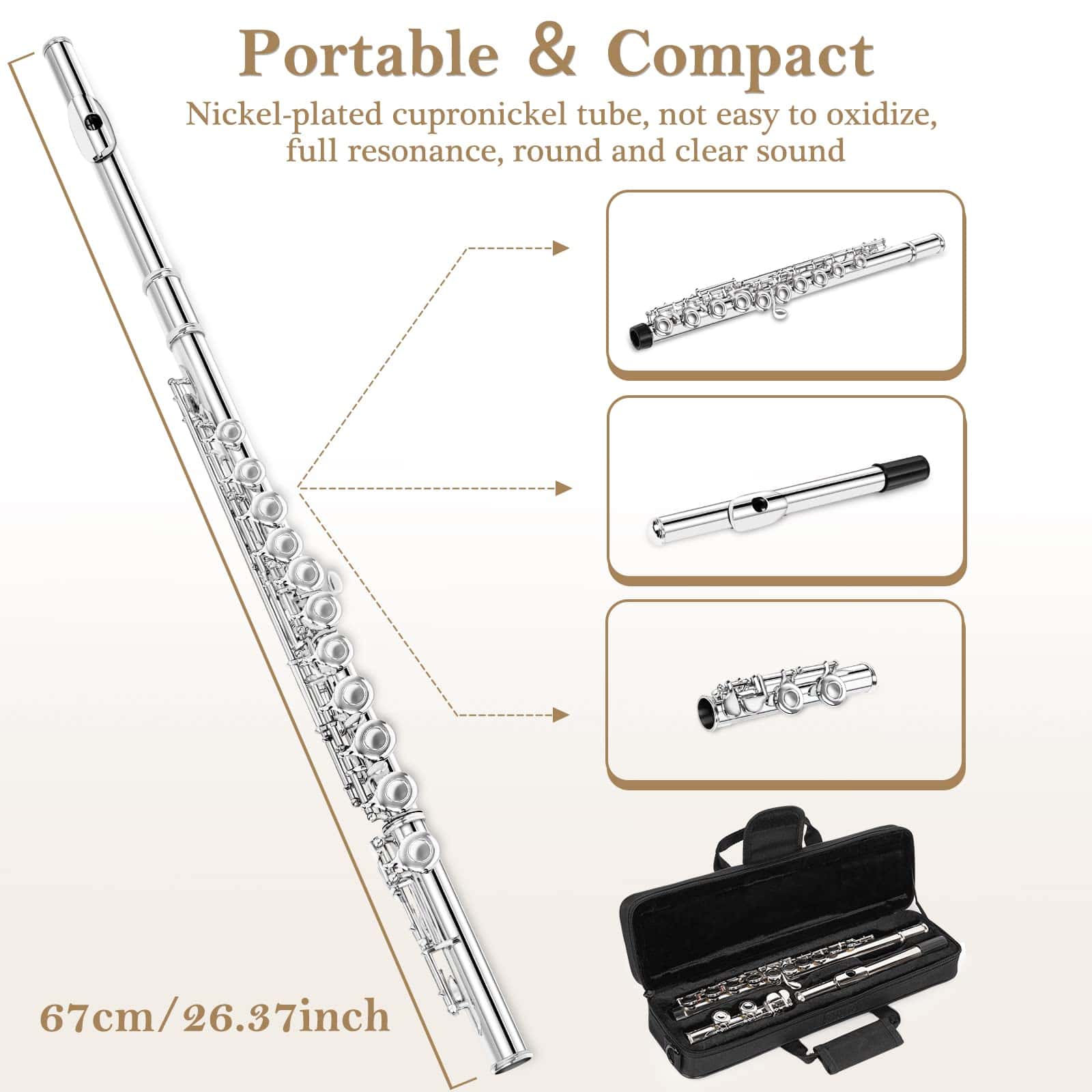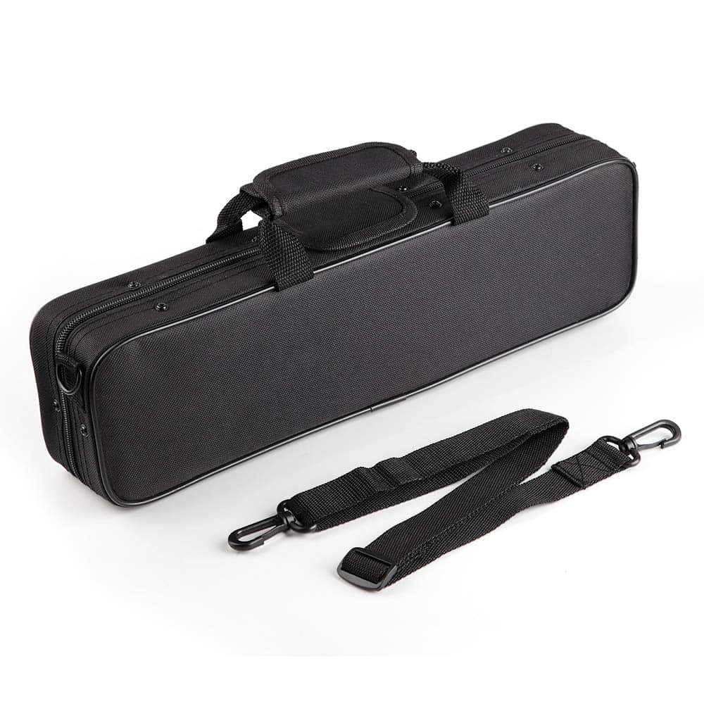 Estuche para flauta de 16 agujeros en Do fabricado con tela Oxford 600D premium resistente y duradera. El material impermeable protege la flauta del agua, la lluvia y el polvo, manteniéndola seca y libre de suciedad. Con cremalleras dobles de metal de alta calidad que se deslizan suavemente sin atascarse ni romperse. El estuche cuenta con un amplio bolsillo exterior con cremallera para guardar soporte de flauta, partituras, etc. Las correas para el hombro y los mangos ajustables permiten llevarlo como mochila o bolso de mano, siendo adecuado para personas de todas las edades. Con acolchado de espuma de 10mm y almohadillas antifricción en la parte inferior para proteger el instrumento de golpes inesperados. Un estuche práctico y cómodo para transportar tu flauta de forma segura y organizada.