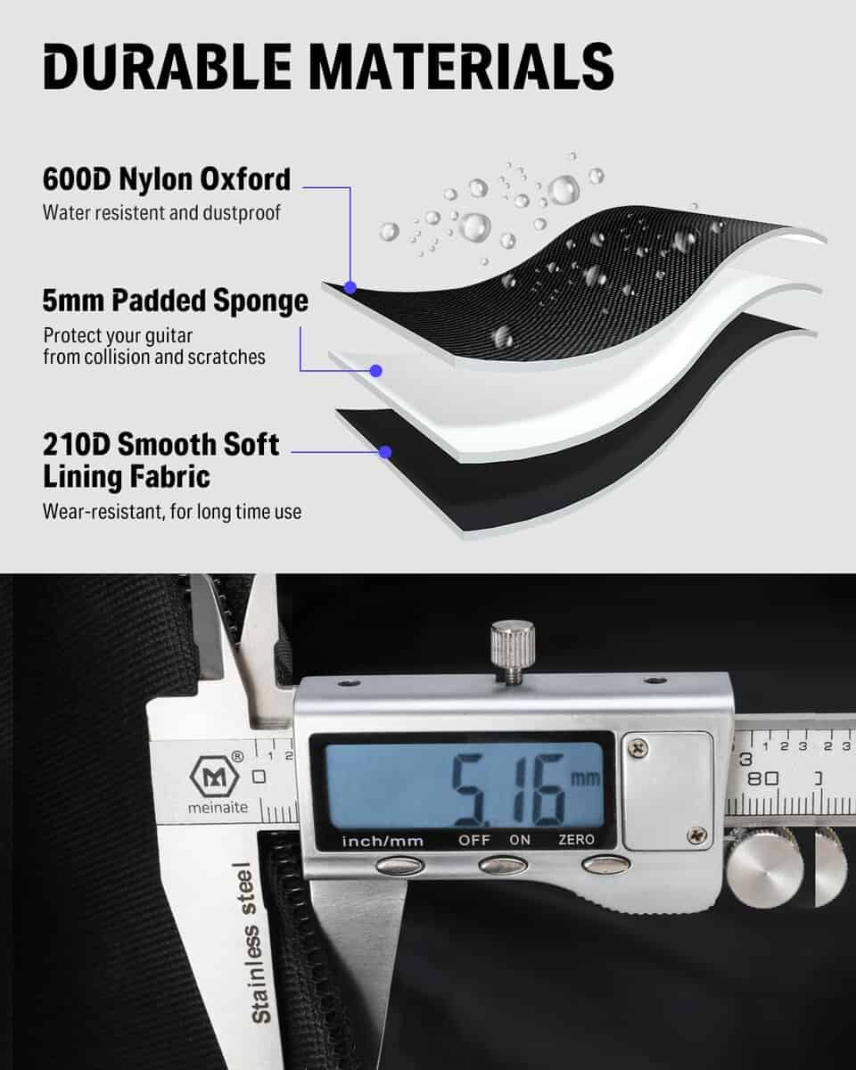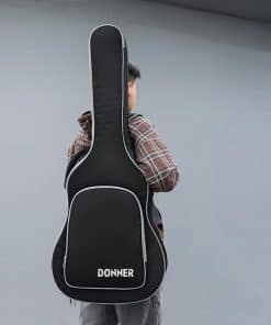 El estuche para guitarra acústica Donner de 40 41 pulgadas está diseñado para brindar la máxima protección a tu instrumento musical. Con una espuma de relleno gruesa de 5 mm, tu guitarra estará segura de arañazos y colisiones. La almohadilla inferior a prueba de golpes minimiza el impacto durante el transporte. La bolsa es ligera y portátil, con correas ajustables y un asa de espuma gruesa para mayor comodidad. Las cremalleras metálicas bidireccionales son suaves y duraderas, garantizando un fácil acceso a tu guitarra. Además, el bolsillo frontal grande proporciona espacio para guardar accesorios como partituras, CDs, cuerdas, cables, afinadores, y más. Protege tu guitarra acústica con estilo y comodidad con este estuche de alta calidad.