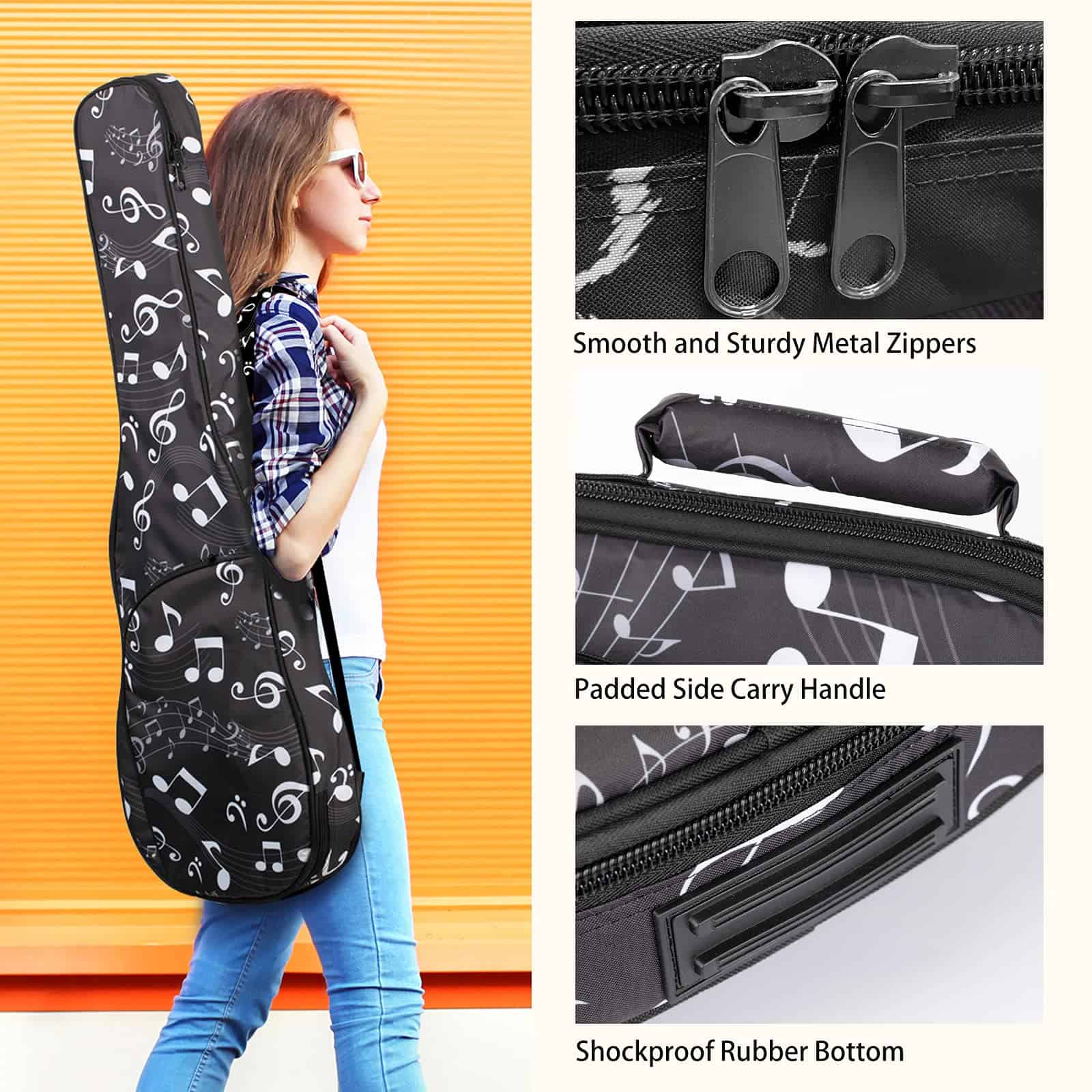 1. Forro acolchado suave: el estuche tiene un acolchado de 8mm en todo para proteger tu guitarra de accidentes y rayones durante los viajes.