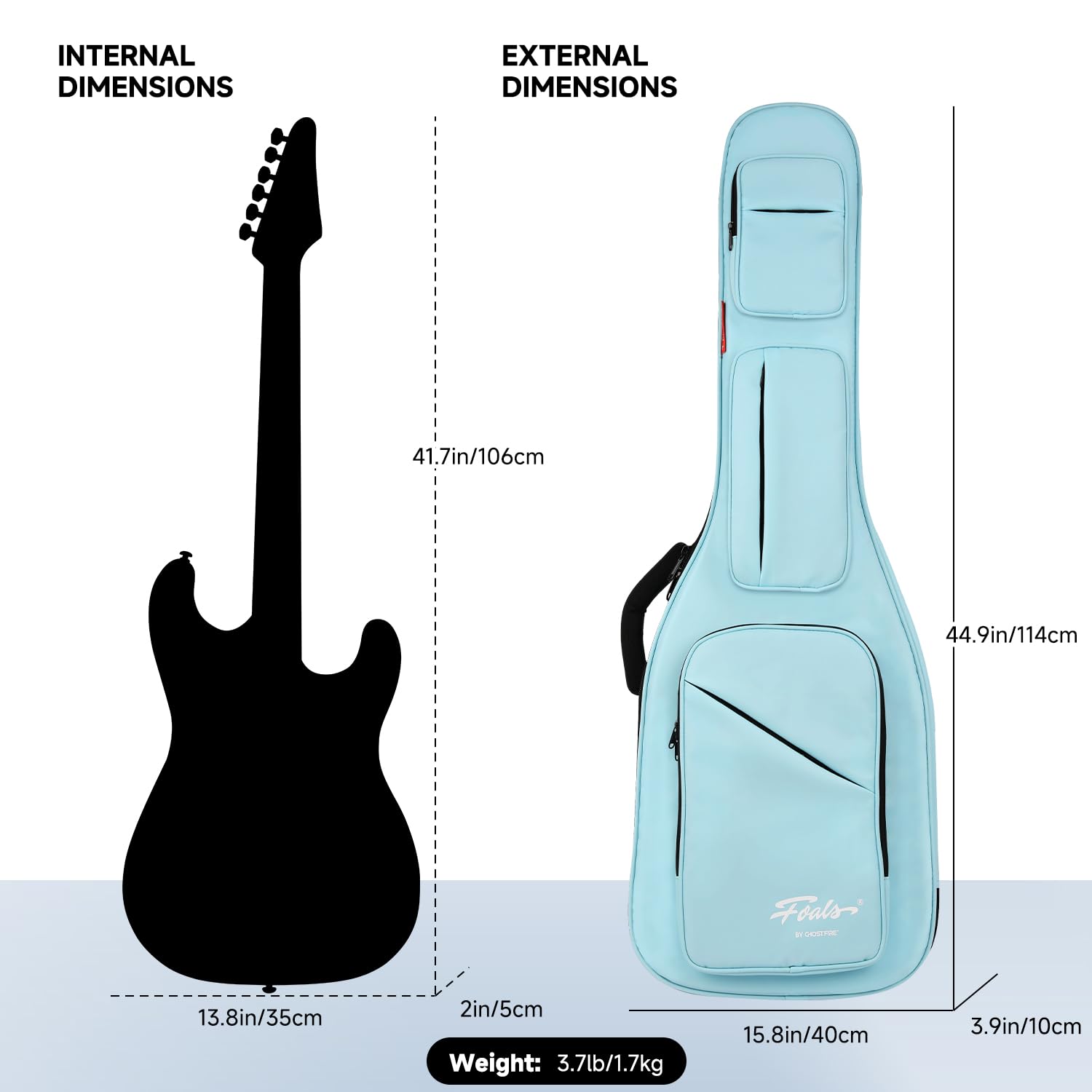 El estuche para guitarra eléctrica GHOSTFIRE FOALS Phantom Series está diseñado pensando en los músicos, con un compartimento inferior para cables de guitarra colgantes, bolsillos superiores y medios para correas, cuerdas, aceite protector de cuerdas, púas, paños de limpieza y otros accesorios pequeños. No importa cuántos accesorios necesites transportar, este estuche para guitarra puede satisfacer fácilmente tus necesidades. Disponible en más de diez elegantes colores macarrónicos, este estuche para guitarra se adapta a tus diferentes preferencias de apariencia. El diseño de la correa reflectante trasera no solo agrega un punto de interés visual, sino que también mejora la seguridad durante el uso nocturno, asegurando que te destaques en cualquier entorno. Fabricado con tejido compuesto de nylon importado resistente al agua, este estuche para guitarra garantiza que tu instrumento permanezca seco y seguro en todo momento. Ya sea en climas lluviosos o ambientes húmedos, este estuche proporciona una protección integral para tu instrumento. Utilizando tela de espuma de perla engrosada, este estuche maximiza la prevención de daños durante el transporte. Ya sea para uso diario o viajes de larga distancia, tu instrumento recibirá el máximo cuidado y protección. Con una almohada de cuello desmontable que se ajusta perfectamente al cuello del instrumento, proporcionando protección tridimensional. Este diseño no solo mejora la seguridad de tu instrumento, sino que también aumenta la conveniencia, asegurando que tu instrumento esté bien protegido en cualquier situación.