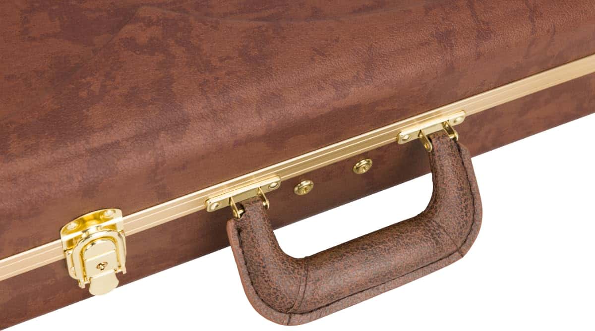 Viaje en el tiempo con esta moderna interpretación del icónico estuche de gafas de Fender. Modelado después del estuche que venía con las guitarras Jazzmaster y Jaguar en la década de 1960, este estuche cuenta con acabados modernos construido con un resistente exterior de ABS y cubierto con una impresionante impresión de imitación de cuero con textura de grano de cuero y herrajes dorados para un toque vintage. Un suave forro interior de acrílico peluche triturado asegura que su guitarra permanezca libre de arañazos y daños, mientras que un compartimento de doble puerta proporciona un amplio espacio para accesorios.