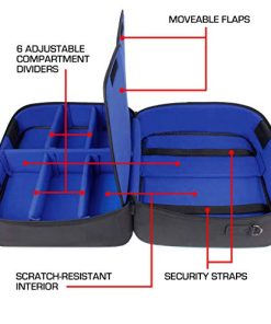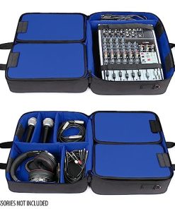 Estuche para Mezclador de Audio USA Gear – Bolsa de Viaje para Mezclador DJ con Interior Personalizable y Exterior Resistente al Agua Compatible con Behringer Q1202USB, Mackie ProFX8v2, Yamaha MG10XU y Más Mezcladores – Azul. Este estuche para mezclador de audio presenta un interior personalizable que le permite configurar los separadores según sus necesidades para adaptarse a múltiples accesorios, como micrófonos de podcast, cables y más equipos de grabación de música. Con una correa para el hombro acolchada y un asa resistente, este estuche brinda portabilidad y protección para su mezclador, cables, micrófonos y otros equipos de DJ. El interior resistente a los arañazos protege su equipo de podcast de la abrasión durante el transporte. El exterior resistente a la intemperie está hecho de nailon RipStop tejido de forma ajustada para brindar la mejor protección contra daños por agua, arañazos e impactos. Con dimensiones interiores de 16 x 12.5 x 7.5 pulgadas, este estuche es perfecto para transportar su mezclador de sonido de forma segura. ¡Obtenga el suyo hoy y proteja su valioso equipo de audio mientras viaja!