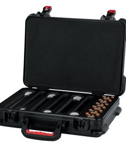 Los estuches para micrófonos de la serie GTSA de Gator Cases están construidos de sólido plástico de polietileno de grado militar y están diseñados para proteger tus preciosos equipos. El exterior de los estuches para micrófonos de la serie GTSA cuenta con un nuevo pestillo con cerradura aprobado por la TSA protegido por carcasas de desviación de impacto. Un mango ergonómico moldeado por inyección proporciona la máxima comodidad durante el transporte. El exterior del estuche para micrófonos de la serie GTSA está diseñado con un friso continuo con recubrimiento en polvo negro, agregando estilo y resistencia estructural al diseño de los estuches. Los insertos de micrófono acolchados con espuma aseguran los micrófonos en su lugar durante el transporte y almacenamiento. La tapa del estuche para micrófono también está acolchada sobre los compartimentos para evitar que los micrófonos se muevan. También se proporcionan compartimentos formados para almacenar baterías adicionales. El estuche GTSA-MICW6 mantiene 6 micrófonos inalámbricos que miden 10.25″ de largo y 2.25″ de profundidad. Las dimensiones interiores son Largo interior: 18″ Ancho interior: 14.75″ Alto interior: 5.5″ y está diseñado para adaptarse a micrófonos inalámbricos de fabricantes como Samson, Behringer, Audix, Earthworks, Shure, Neumann, Electro Voice, Blue Microphones, Telefunken y muchos más. Para un ajuste perfecto, simplemente compara las dimensiones del micrófono inalámbrico con las dimensiones del inserto de micrófono formado proporcionado. ¡Gator Cases es conocido por fabricar productos innovadores diseñados para proteger! Ofrecemos una amplia gama de productos con una variedad de tamaños disponibles, materiales y niveles de protección, para todo tipo de instrumentos y equipos, incluyendo soportes Frameworks, racks de instalación Rackworks y accesorios, y estuches para tambores Protector. ¡No es difícil encontrar una excelente razón por la cual Gator debería ser la marca en la que confíes para proteger tu equipo de por vida!