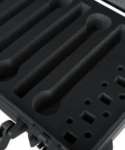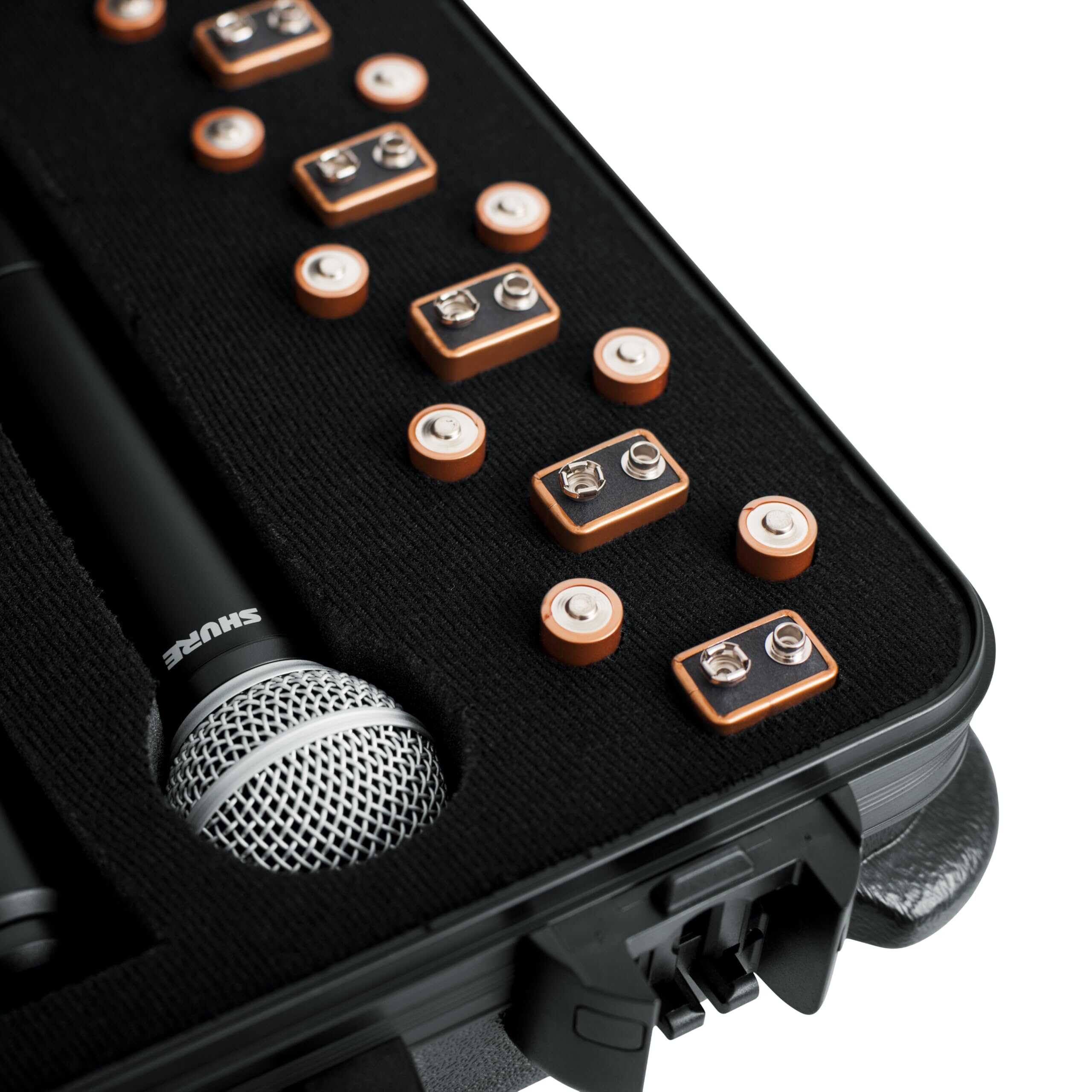 2. Interior forrado con espuma protectora con compartimentos formados para micrófonos y baterías.