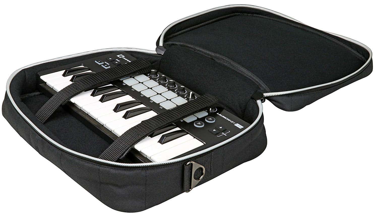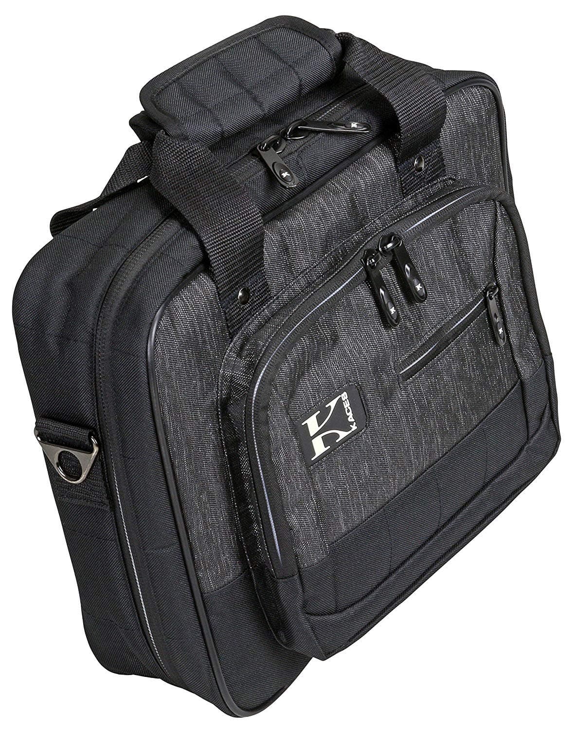 Las fundas de la serie Luxe de Kaces están diseñadas para proteger y transportar tus teclados, sintetizadores y equipo de sonido favoritos con estilo. El KB1210 está diseñado para adaptarse a pequeños mini-teclados, máquinas de batería con un tamaño interior máximo de 12.5 x 10.5 x 3.5. Construido con un duradero tejido de poliéster 600D resistente al agua con respaldo de PVC en un impresionante diseño en dos tonos de carbono/negro plumoso, con relleno denso de espuma, un interior suave y de terciopelo, y correas de seguridad internas ajustables, puedes estar seguro de que tu equipo llegará seguro y listo para rockear. Para ayudar a acomodar accesorios, cada bolsa cuenta con un bolsillo frontal grande, expansible de 9.5″ x 8″ x 1″ que alberga dos bolsillos interiores perfectos para fuentes de alimentación, efectos, pedales de sostenimiento o volumen. Un lazo de cable de velcro y un amplio bolsillo frontal con cremallera adicional proporcionan almacenamiento adicional y ayudan a mantener tus cosas organizadas. Las bolsas de Kaces están construidas para durar, utilizando lo último en tecnología de corte y costura, con cremalleras de nylon de grado de equipaje 10, tuberías de PVC reforzadas alrededor de los bordes, costuras de nylon de extra resistencia en todos los puntos de tensión probados, asas de transporte remachadas con revestimiento acolchado, una sección inferior reforzada con placas de rejilla de goma, y una garantía limitada de 1 año. -Se adapta a pequeños teclados, mezcladores, controladores, máquinas de batería y equipo de audio. -Tamaño interior máximo de 12.5 x 10.5 x 3.5. -Poliéster duradero, resistente al agua 600D. -Relleno de espuma de 20mm para protección. -2 correas de seguridad interiores ajustables. -Asas de transporte remachadas con revestimiento acolchado. -Bolsillo frontal grande expansible mide 9.5″ x 8″ x 1″. -Bolsillos interiores y lazo para cable. -Bolsillo frontal con cremallera exterior. -Cremalleras de grado de equipaje 10 para fiabilidad y longevidad. -Garantía limitada de 1 año.