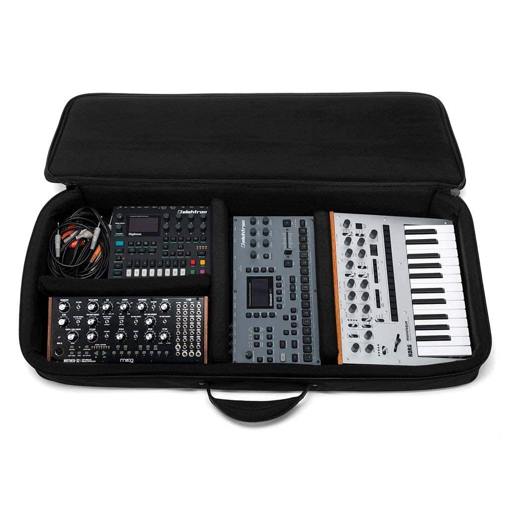 Presentamos una forma más inteligente de viajar con tus sintetizadores: el estuche de mochila SUSTAIN de Analog Cases. Es una forma cómoda y fácil de llevar tu teclado a cualquier lugar, mientras brinda una protección seria. El estuche SUSTAIN ofrece prácticamente todos los beneficios de un estuche rígido, pero pesa solo 8 libras. Es ligero como una pluma, pero resistente como un clavo. El cuerpo ultraduradero está reforzado con 3/4″ de acolchado de espuma y paneles de plástico moldeado rígido, por lo que conserva una forma firme y protege completamente tu sintetizador. Es resistente a la carretera, pero no necesitarás asistentes para transportarlo. Fiel a su nombre, el estuche SUSTAIN está construido para durar. Cuenta con herrajes de metal, cremalleras extra grandes mejoradas y un interior forrado de terciopelo. El asa extra gruesa y las correas de mochila premium son cómodas y espaciosas. ¡Incluso podría ser el primer estuche de teclado con el que realmente disfrutas viajar! Como todos los productos de Analog Cases, el estuche SUSTAIN está personalizado a las dimensiones exactas de tu equipo. Ha sido diseñado cuidadosamente para que sea un ajuste perfecto para el Native Instruments S49, Sequential Prophet Rev2, Prophet 6 y OB-6. Apreciarás el factor de forma compacto de este estuche, y el ajuste ceñido significa que puedes estar seguro de que tu teclado está totalmente seguro. Se incluyen 4 separadores de espuma con velcro, para que puedas personalizar fácilmente el diseño interior para transportar teclados más pequeños, o incluso múltiples piezas de equipo.