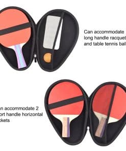 3. Gran Capacidad: Pequeña pero de gran capacidad, puede acomodar dos raquetas cortas al mismo tiempo. Para aquellos que les gustan las raquetas de mango largo, 1 lado se puede colocar en el lateral, y el otro lado puede almacenar tenis de mesa y otros pequeños artículos para satisfacer sus necesidades de almacenamiento.