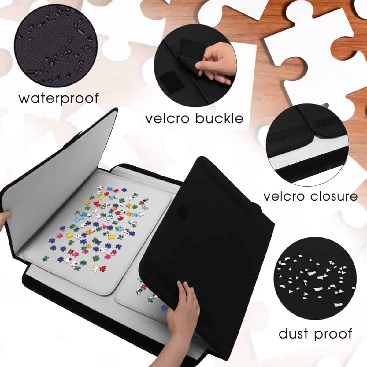 Con correa de velcro para fijar el tablero de rompecabezas, asegurando que tu rompecabezas permanezca en su lugar.