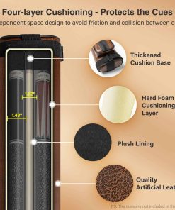 Estuche para Taco de Billar Adhafera, 2 X 2 Estuche Duro para Palos de Billar, Hecho de Cuero Sintético Accesorios de Billar. El estuche rígido para transportar 2 X 2 palos de billar Adhafera proporciona una buena protección para el palo de billar y los mantiene alejados de la deformación, la humedad y los arañazos. La superficie del estuche de palo de billar está hecha de cuero artificial, duradero e impermeable; el tubo divisor ovalado interior está hecho de esponja de espuma, ligero y resistente; la parte interior está forrada de gamuza para evitar que el palo de billar s… (truncated)