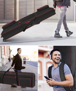 2. 3 Formas de Transporte: El bolso para teclado de 88 teclas cuenta con correas ajustables para hombro, asas resistentes y 2 ruedas de alta calidad, lo que le permite llevarlo como mochila, bolso de mano o rodarlo convenientemente como una maleta. Las correas ajustables para hombro aseguran un transporte cómodo y sin manos, mientras que las resistentes asas de nylon ofrecen una sólida opción de transporte con una sola mano. Este estuche para teclado de 88 teclas acolchado es perfecto para músicos, tecladistas y cualquier persona que busque un bolso para teclado de 88 teclas confiable.