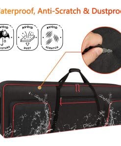 5. Tela Resistente al Agua y al Polvo 600D: Para proteger su instrumento, este bolso para teclado de 88 teclas está hecho de material resistente al agua y a prueba de rasguños, evitando colisiones, arañazos y humedad. La estructura duradera y firme garantiza que el teclado permanezca seco y protegido del polvo. Gracias a su diseño ligero, el bolso para teclado de piano eléctrico portátil facilita el transporte durante el transporte, actuaciones y viajes.