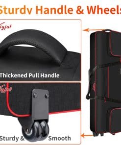 3. Sistema de Arrastre Resistente: El estuche para teclado de 88 teclas con ruedas cuenta con una manija de arrastre engrosada para evitar el desgarro al tirar de su pesado teclado digital. El acolchado de esponja gruesa protege sus manos al usar la manija. Combinado con las resistentes ruedas independientes, esto asegura un transporte suave sin preocuparse por ruedas fácilmente dañadas. Este duradero bolso para teclado de 88 teclas es una excelente elección de regalo para músicos en ocasiones especiales como cumpleaños, aniversarios, Acción de Gracias, Halloween y Navidad.