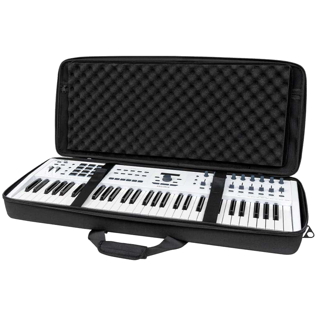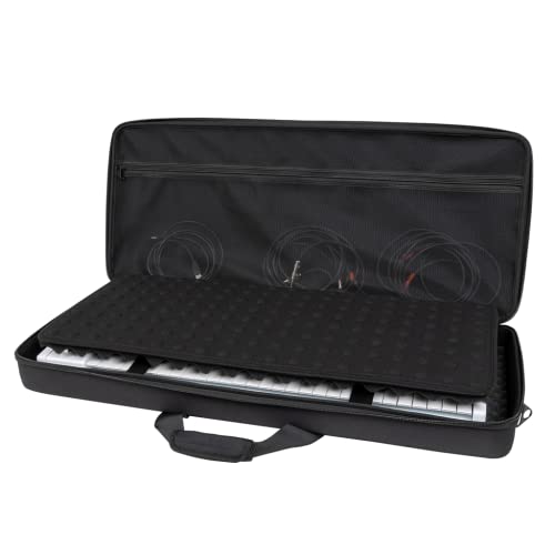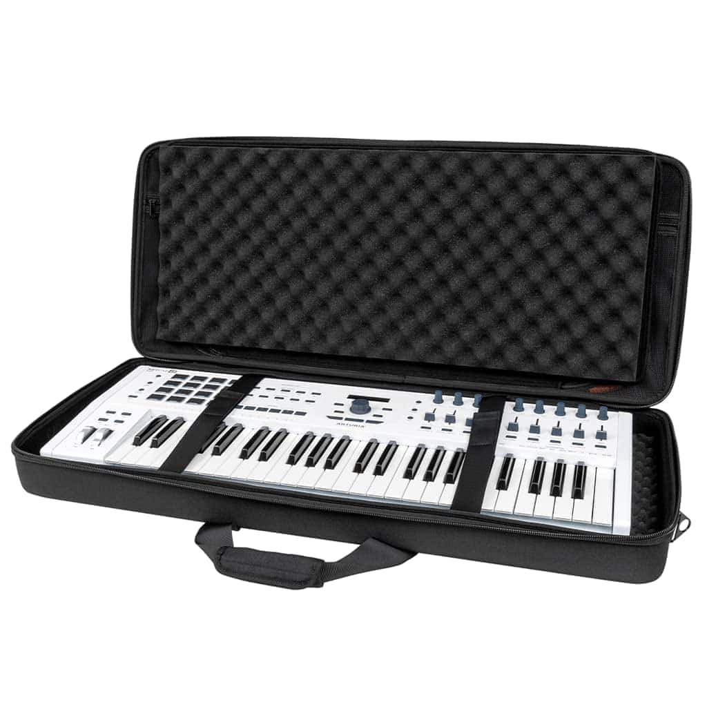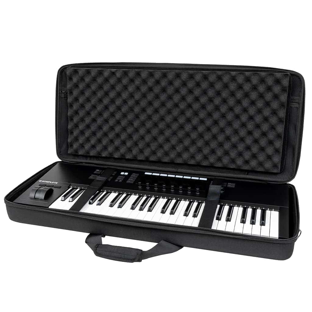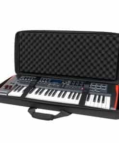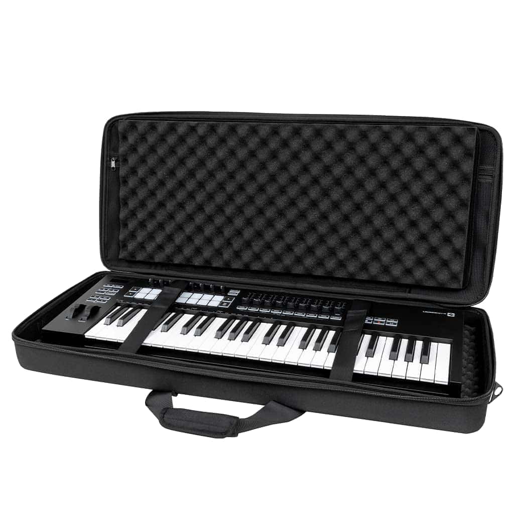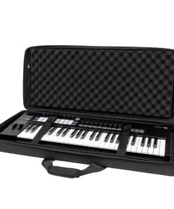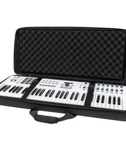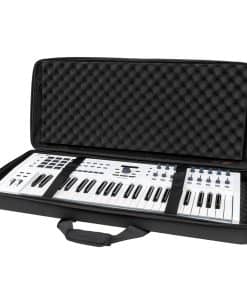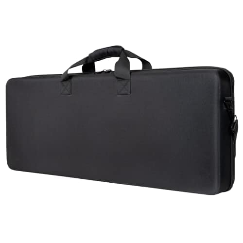 Estuche ligero de EVA moldeado con revestimiento de poliéster resistente al agua diseñado para adaptarse a teclados MIDI de 49 teclas (y algunos de 61 teclas). Incluye bolsillo interno con cremallera de malla para cables y accesorios. Diseño tipo concha con dos capas de espuma de huevo densa para proteger tu teclado.