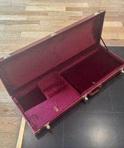 Estuche rígido de madera bloqueable con interior forrado de peluche que incluye almohadillas adicionales para el mástil y el puente. Cuenta con pestillos cromados robustos y protectores en la parte inferior y los laterales para mayor protección y estabilidad. Fabricado con materiales de alta calidad como madera, cuero, peluche y accesorios de hardware, durable y resistente en uso.