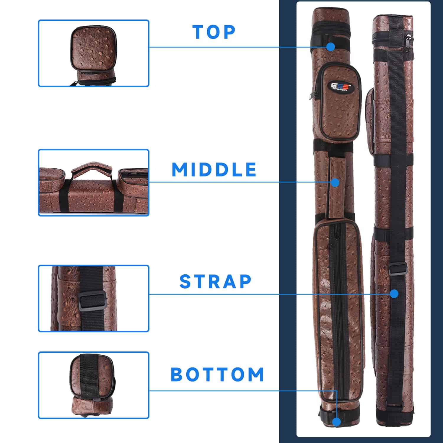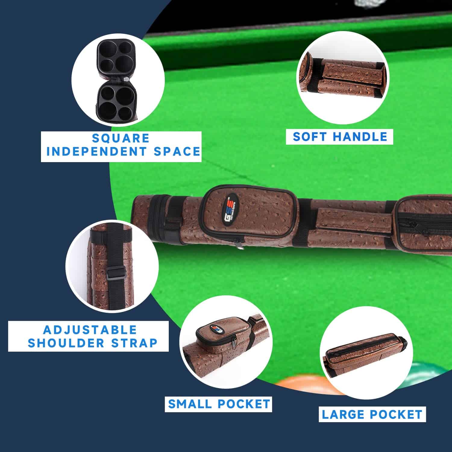 Estuche rígido de lujo para palos de billar -Marrón
