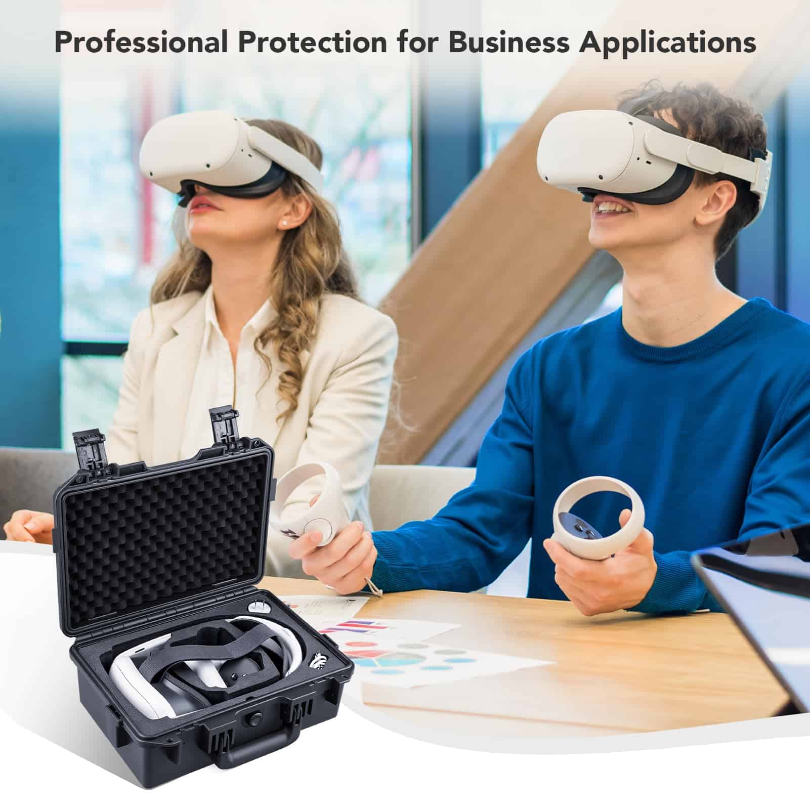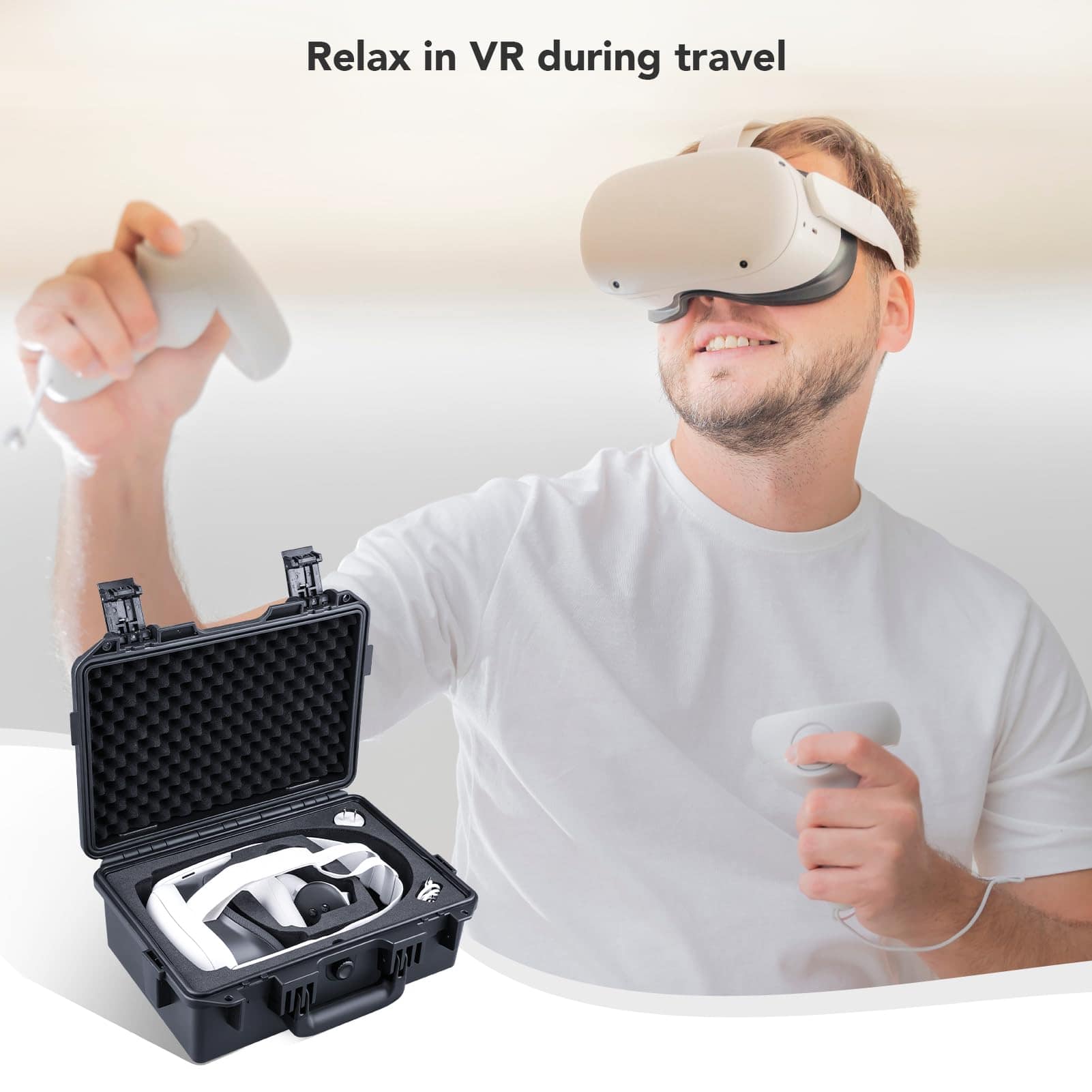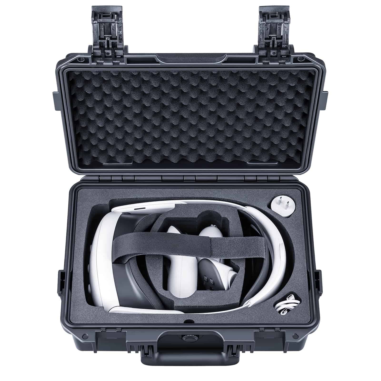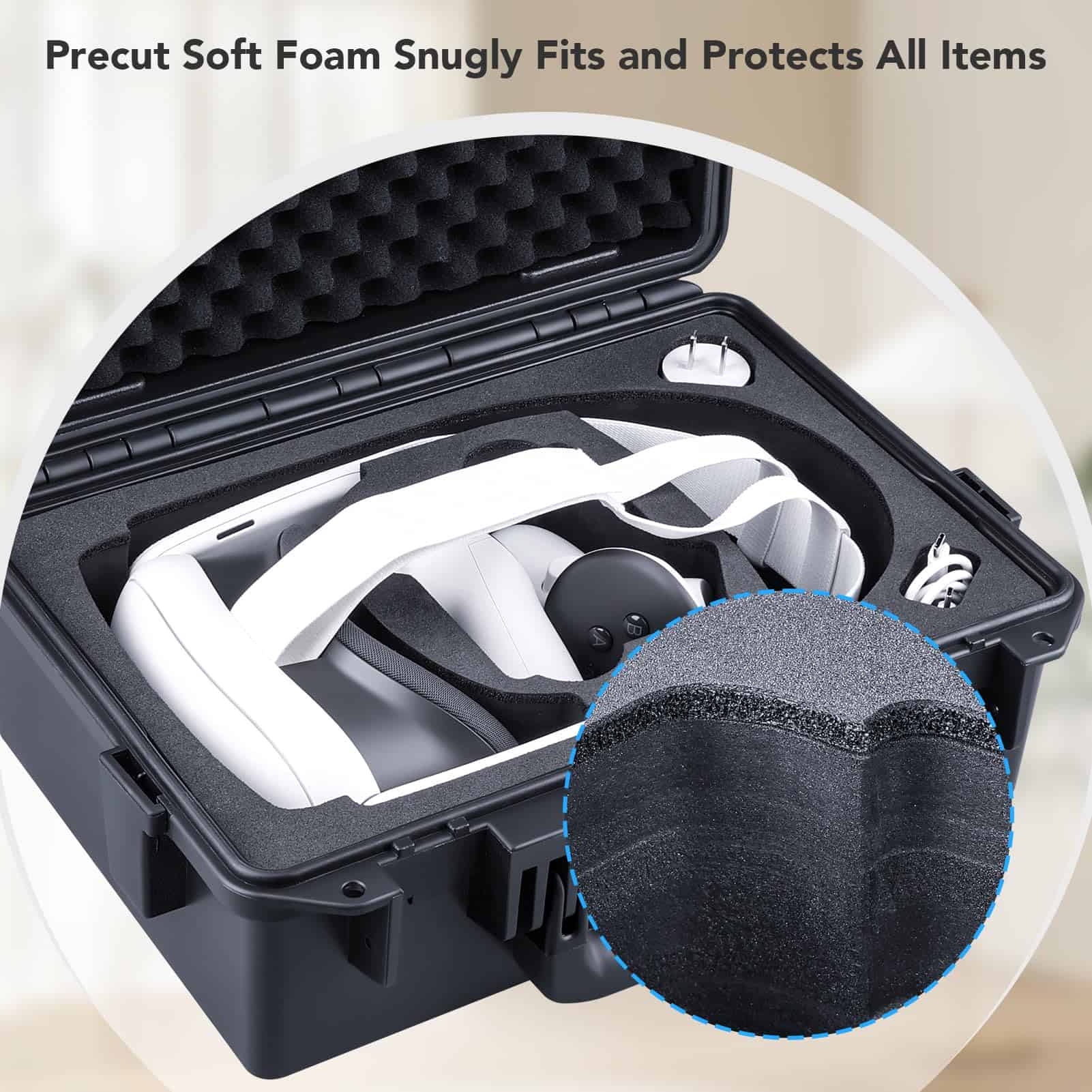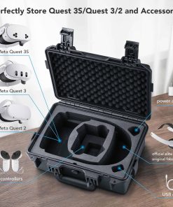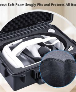 Estuche rígido impermeable Lykus Titan OQ200, diseñado para adaptarse a Quest 3/Quest 2 con correa estándar o correa elite oficial, así como mandos, cargador y cable de carga. La espuma de corte de precisión CNC está hecha de un tipo especial de EVA que es más elástico que el EVA tradicional, lo que proporciona una mejor absorción de la presión y los golpes para una protección interna óptima. El estuche está fabricado con material de polipropileno de alta calidad que ofrece una protección externa fuerte contra golpes y presión. Con certificación IP67 por SGS, el estuche es estanco al agua, manteniendo sus dispositivos seguros incluso si el estuche cae al agua. Además, se puede adquirir una correa para hombro separada para mayor comodidad. Las dimensiones del estuche son 14.2×10.2×5.7 pulgadas / 36x26x14.4 cm y tiene un peso neto de 3.7 libras / 1.7 kg.