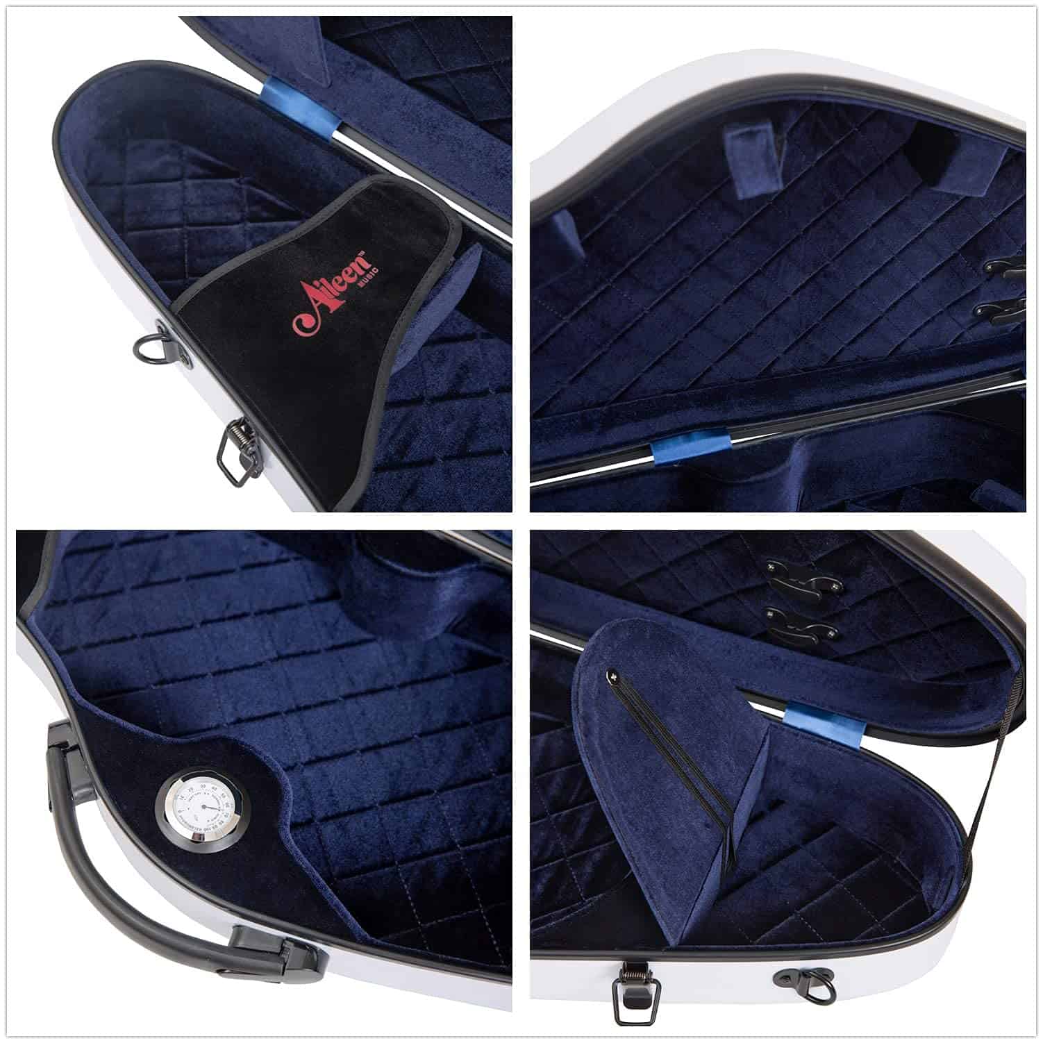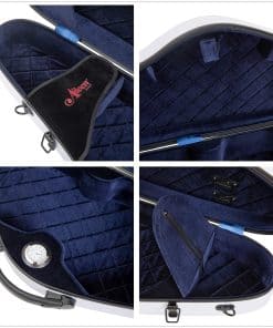 Los estuches para violín de tamaño completo de Aileen están diseñados para satisfacer las necesidades de los violinistas en cuanto a características y precio. Presentan una forma triangular profesional con un exterior duradero tipo fibra de vidrio y un interior de felpa que contiene un espacio de almacenamiento de accesorios en su interior, junto con espacio para dos arcos y un apoyo para el hombro. Puedes llevar este estuche con la cómoda asa lateral o utilizando las correas ajustables tipo mochila para un transporte sencillo. Perfecto para cualquier ocasión. Especificaciones: Tamaño: 31.8 X 10.2 X 5.3 pulgadas, para violín de tamaño completo 4/4. Peso: 5 libras. Exterior: Plástico reforzado con fibra. Interior: Forro de franela y espuma. Colores disponibles: Rojo, Azul, Blanco, Negro. Higrómetro: Incluido. Sobre Aileen Music: Aileen Music ha entrado en su 25º año proporcionando instrumentos musicales y ha sido bien recibido entre los clientes debido a sus productos de calidad, precios competitivos, entrega oportuna y servicio optimizado.