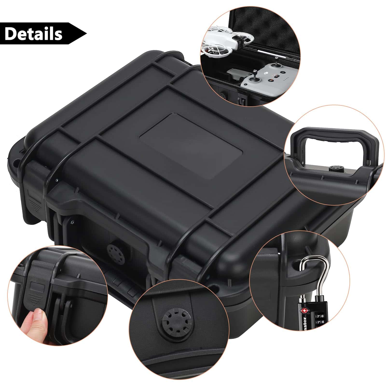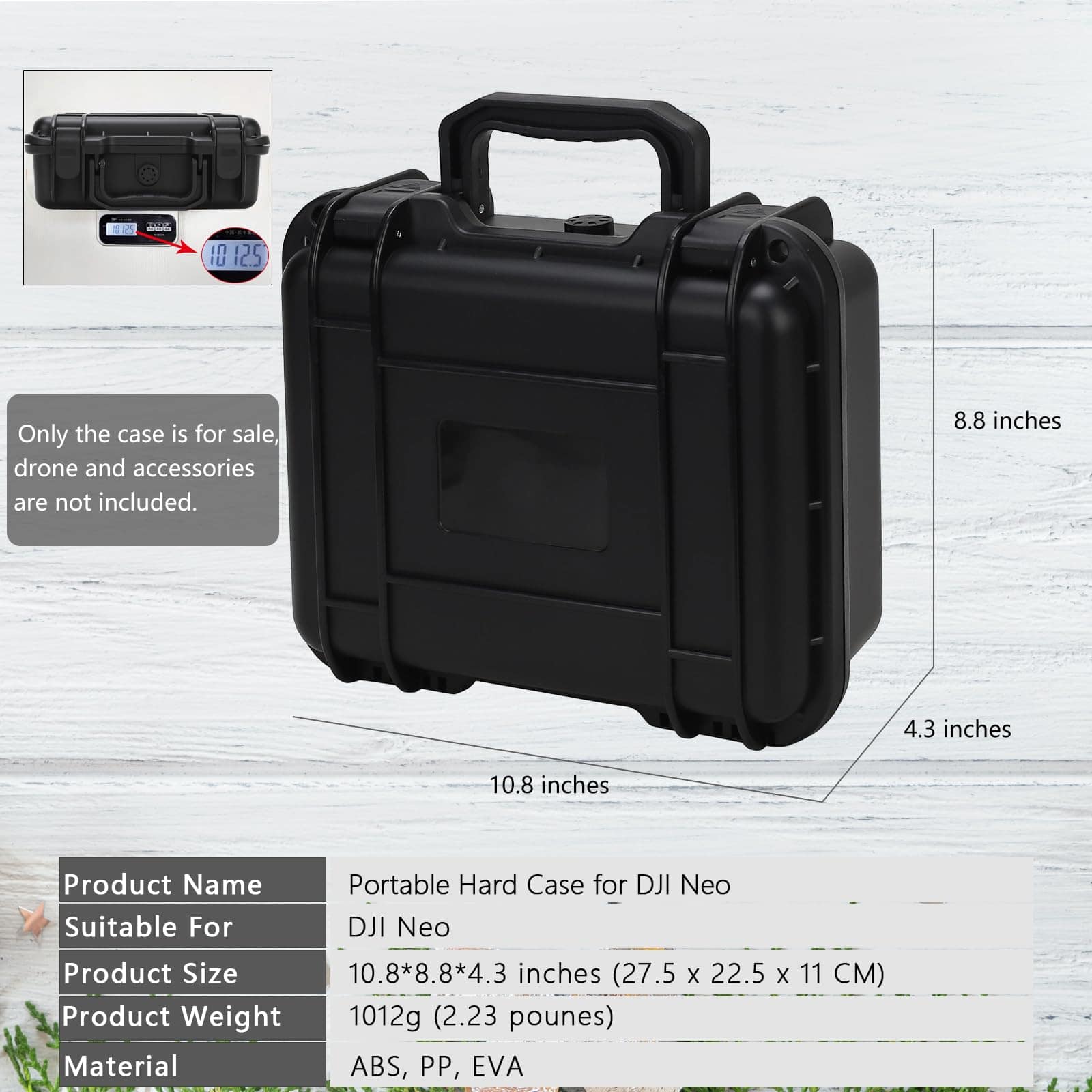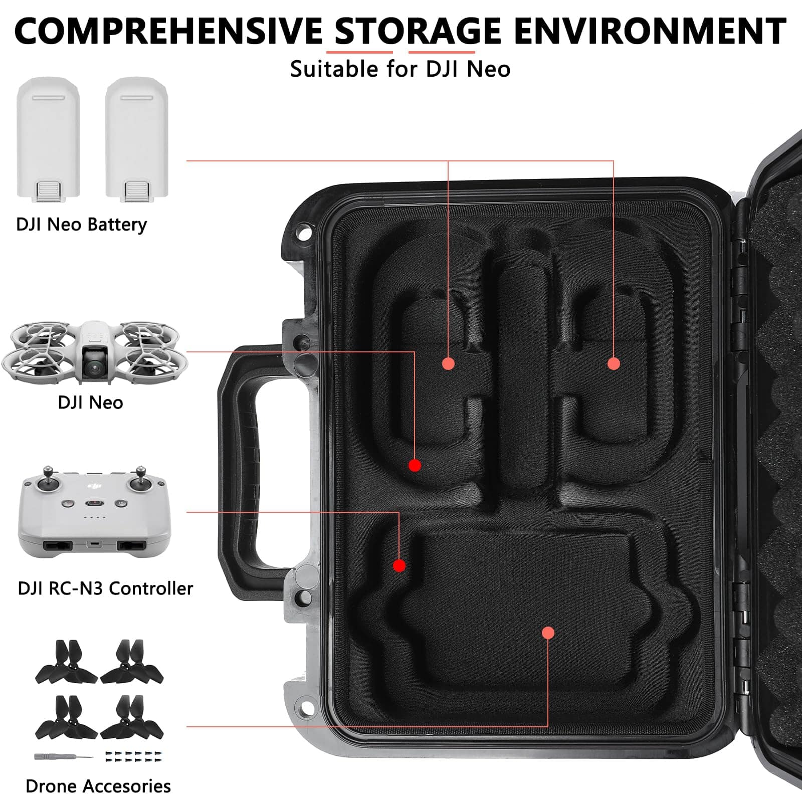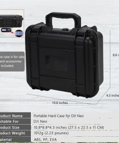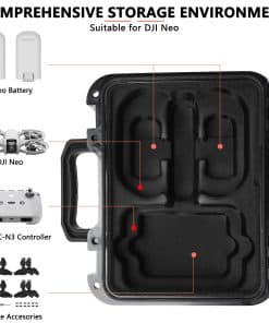 El estuche rígido impermeable de Dronside será tu mejor elección si el dron es difícil de transportar o deseas llevar más accesorios para el dron. El estuche duro impermeable IP67, a prueba de polvo y a prueba de golpes para el combo de vuelo de DJI Neo brinda una protección total a tu dron y accesorios de dron. El orificio del estuche para dron DJI está cortado con precisión de acuerdo con la proporción de los accesorios del dron. Creo que quedarás muy satisfecho con este estuche para dron. Características: Nombre del producto: Estuche Impermeable para Dron DJI Neo Color: Negro Tamaño: 27.5 x 22.5 x 11 cm Peso: 1.13 kg Material: PP + EVA Nivel de impermeabilidad IP67 Compatible con el modelo: DJI Neo Espacio de almacenamiento: 1x Dron DJI Mavic Neo 1x Control remoto RC-N3 de DJI 3x Baterías de vuelo inteligentes incluye una batería en el dron 1x Estuche de filtros ND 1x Adaptador de batería a banco de energía Cable de alimentación de CA Hélices de bajo ruido Otros pequeños accesorios del dron DJI Neo Paquete incluye: 1x Estuche rígido impermeable para Dron DJI Neo (NO incluye el dron, control remoto y otros accesorios de dron) Nota: 1. Debido a las diferencias de luz y pantalla, el color del artículo puede ser ligeramente diferente de las imágenes. 2. Permite diferencias de 1-2 cm debido a la medición manual. 3. Cualquier pregunta sobre este estuche para accesorios duros, no dudes en contactarnos, haremos nuestro mejor esfuerzo para servirte.