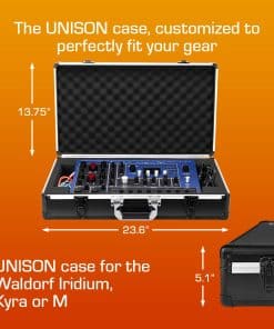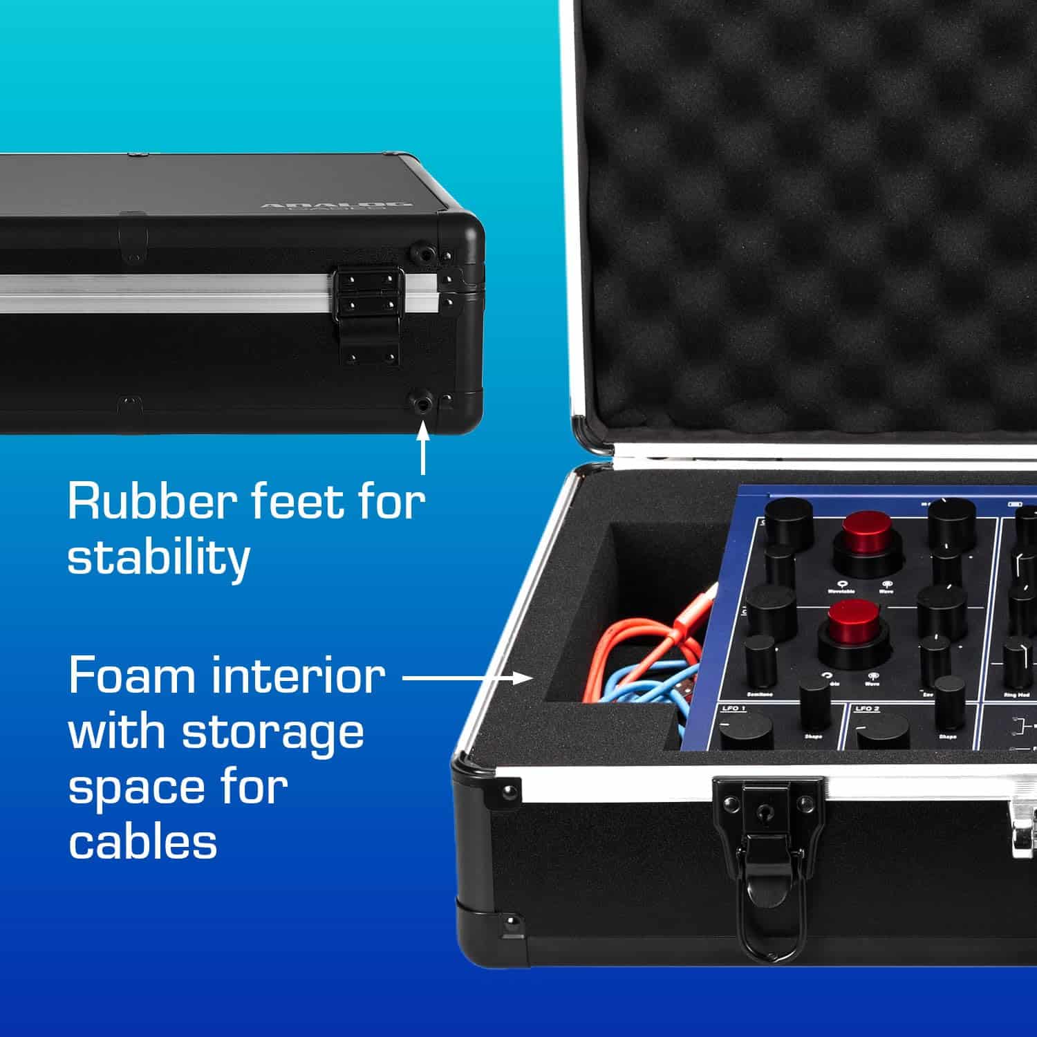 1. El estuche perfecto para tu Waldorf Iridium/Kyra/M: una solución de viaje ideal para productores y músicos móviles. 2. Estuche rígido de aluminio ultra ligero con un inserto de espuma cortada a medida: proporciona una excelente protección. 3. Equipado con todas las características que necesitarás para viajar: un compartimento dedicado para guardar cables, un cómodo asa acolchada y cierres metálicos bloqueables (2 llaves incluidas). 4. Diseñado en los EE. UU. por el equipo de Analog Cases. Fundada en 2018 en Los Ángeles, Analog Cases ofrece una línea de productos completa de más de 100 estuches a medida para samplers, interfaces de audio, sintetizadores, controladores MIDI y más.