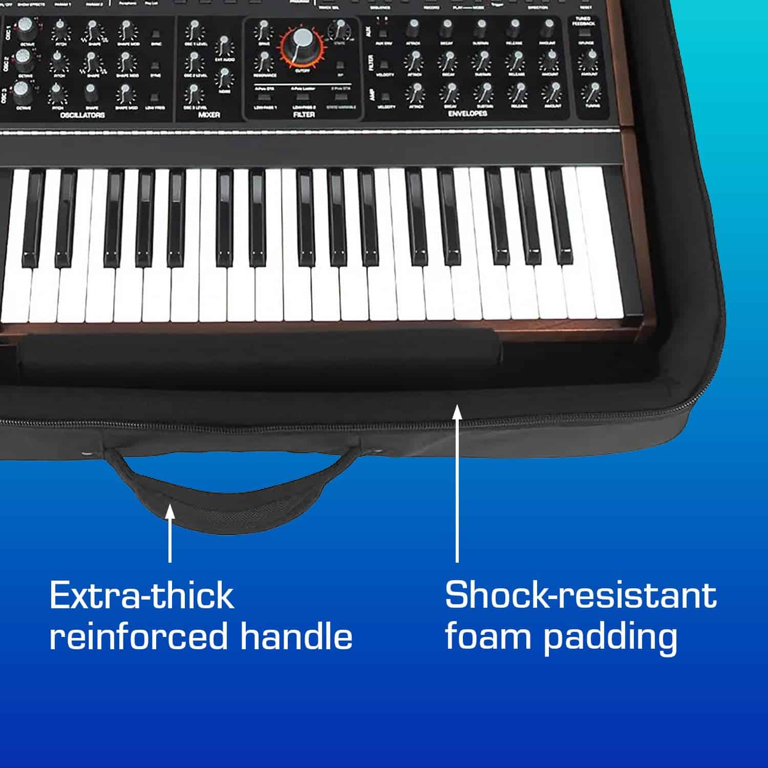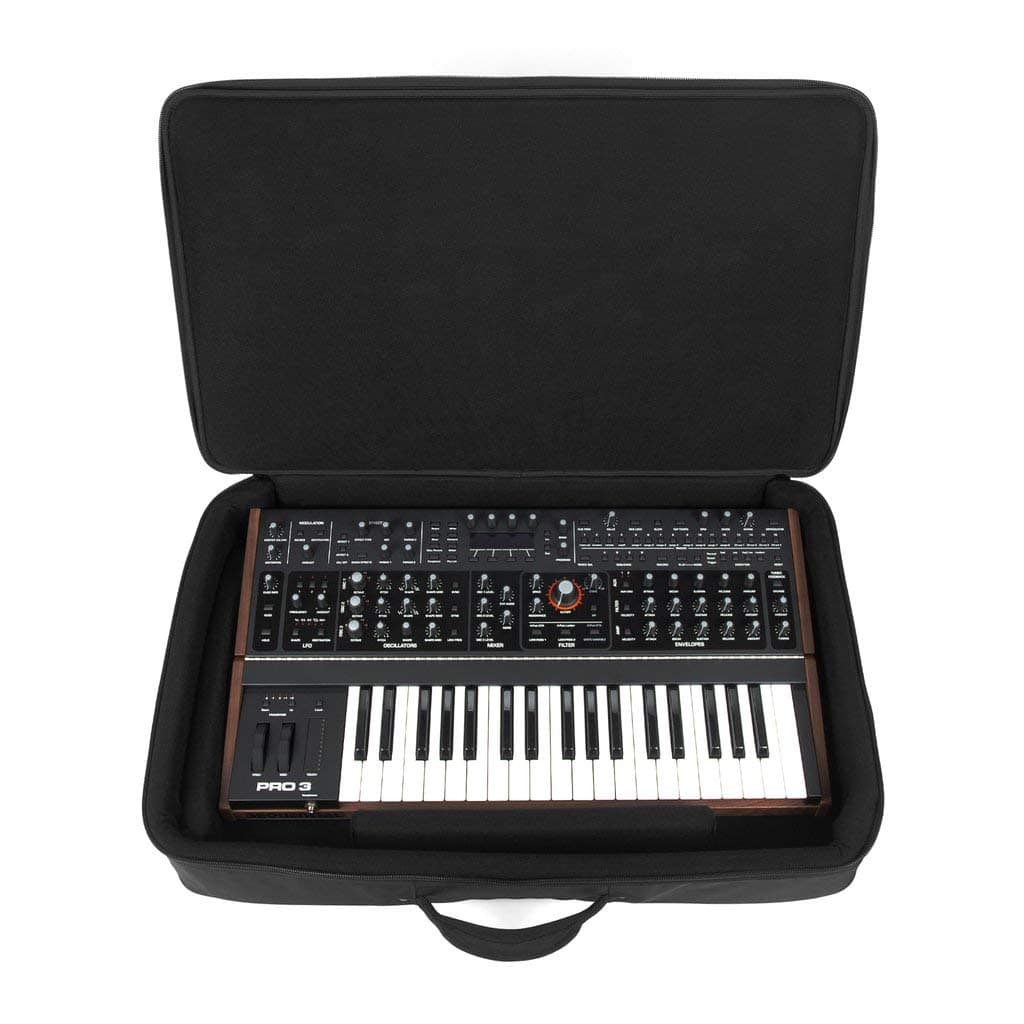 1. El estuche perfecto para tu Sequential Pro 3 o Behringer Odyssey: una solución de viaje ideal para productores y músicos móviles. 2. Los estuches SUSTAIN están forrados con 3/4″ de espuma moldeada densa que proporciona toda la protección de un estuche rígido, pero con una fracción del peso. Los materiales premium al 100% incluyen un exterior de nylon balístico, un interior de terciopelo súper suave y una cremallera ultra suave. 3. Equipado con todas las características que necesitarás para viajar: correas de mochila espaciosas y cómodas, dos grandes bolsillos con cremallera para cables y accesorios, un asa acolchada ultra gruesa y cuatro inserciones acolchadas con velcro que se pueden colocar libremente para proporcionar el acolchado óptimo para cualquier configuración de equipo. 4. Dimensiones interiores: 29 x 17 x 6 pulgadas / Dimensiones exteriores: 31 x 19 x 8 pulgadas