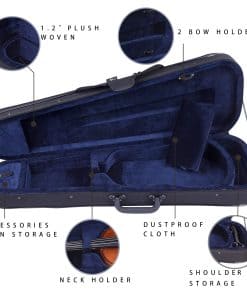 El estuche para violín Aileen CSV102 utiliza capas de espuma de alta densidad duraderas para proteger tu instrumento. El CSV102 cuenta con una cubierta de tela Oxford de alta densidad con cremalleras YKK que resisten las presiones exteriores. Viene equipado con una correa para el hombro para facilitar su transporte y un asa superior que permite mantenerlo en posición vertical. Incluye dos sujetadores de arcos, una manta y un compartimento para accesorios dedicado para tu reposo de hombro. El estuche para violín CSV102 está disponible en negro y tamaño completo de violín 4/4.
