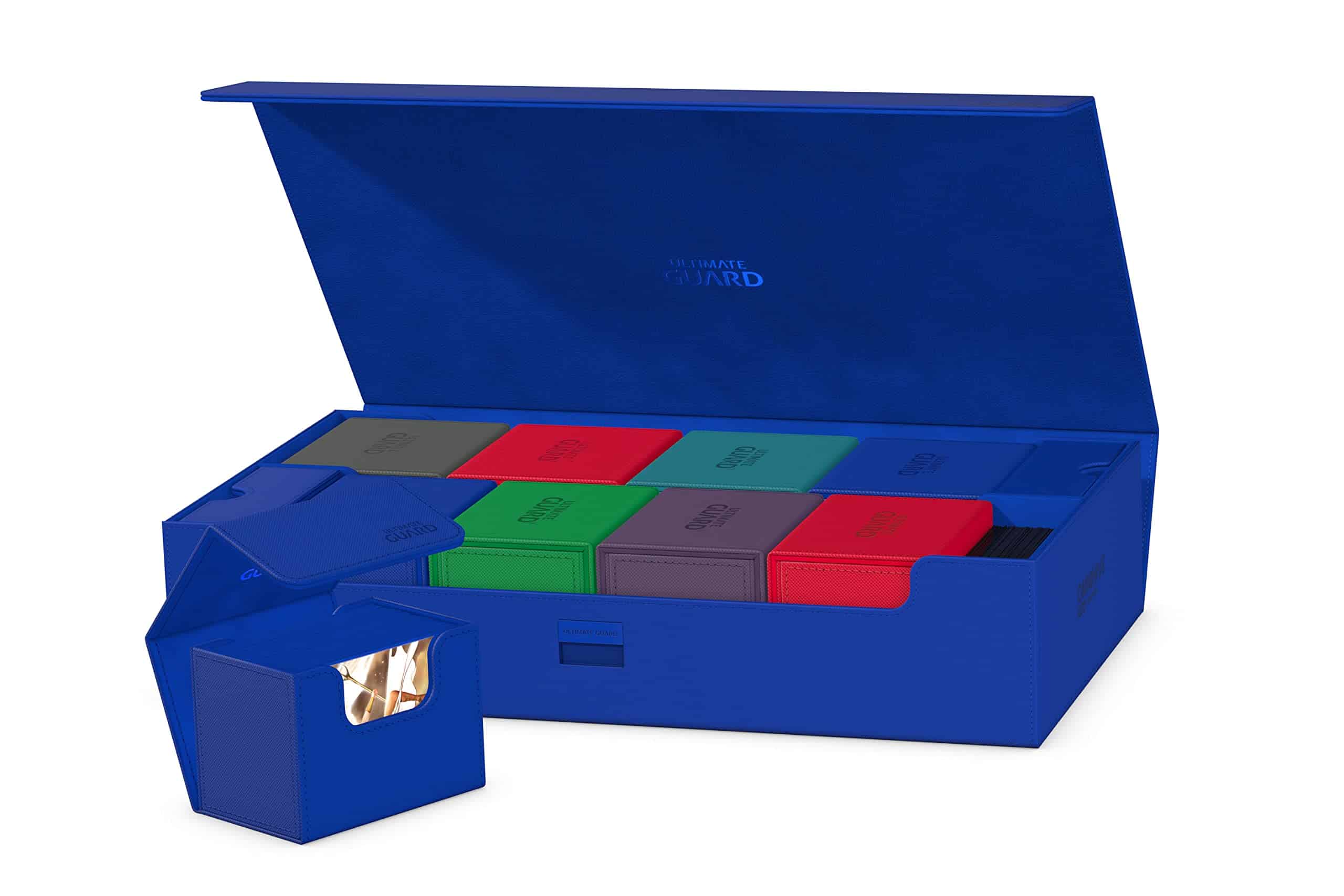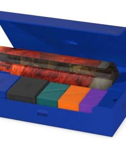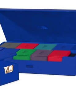 La caja espaciosa y flexible definitiva para almacenar grandes colecciones. Esta caja puede contener más de 1000 cartas de doble funda o transportar varios mazos y/o tapetes de juego, además de otros productos de Ultimate Guard como el Sidewinder 133+. Dos bandejas extraíbles, magnéticas, ajustables y apilables hacen que esta caja sea única: es adaptable para todo tipo de juegos y formatos y permite múltiples formas diferentes de almacenar y usar tu colección.