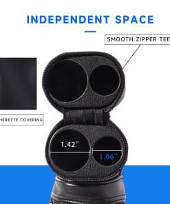 4. Espacio Independiente y Resistente a los Arañazos: El separador dentro del estuche separa el culote del eje, y la parte inferior forrada de fieltro suave amortigua el palo de billar si se cae.