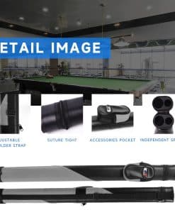 3. Material de Calidad y Correa Ajustable para el Hombro: El estuche para palos de billar tiene un forro de piel sintética, exterior rígido que protege el palo de golpes y arañazos, con una correa ajustable para el hombro para facilitar el transporte.