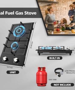 Estufa de gas de 2 quemadores, cocina de propano de 12