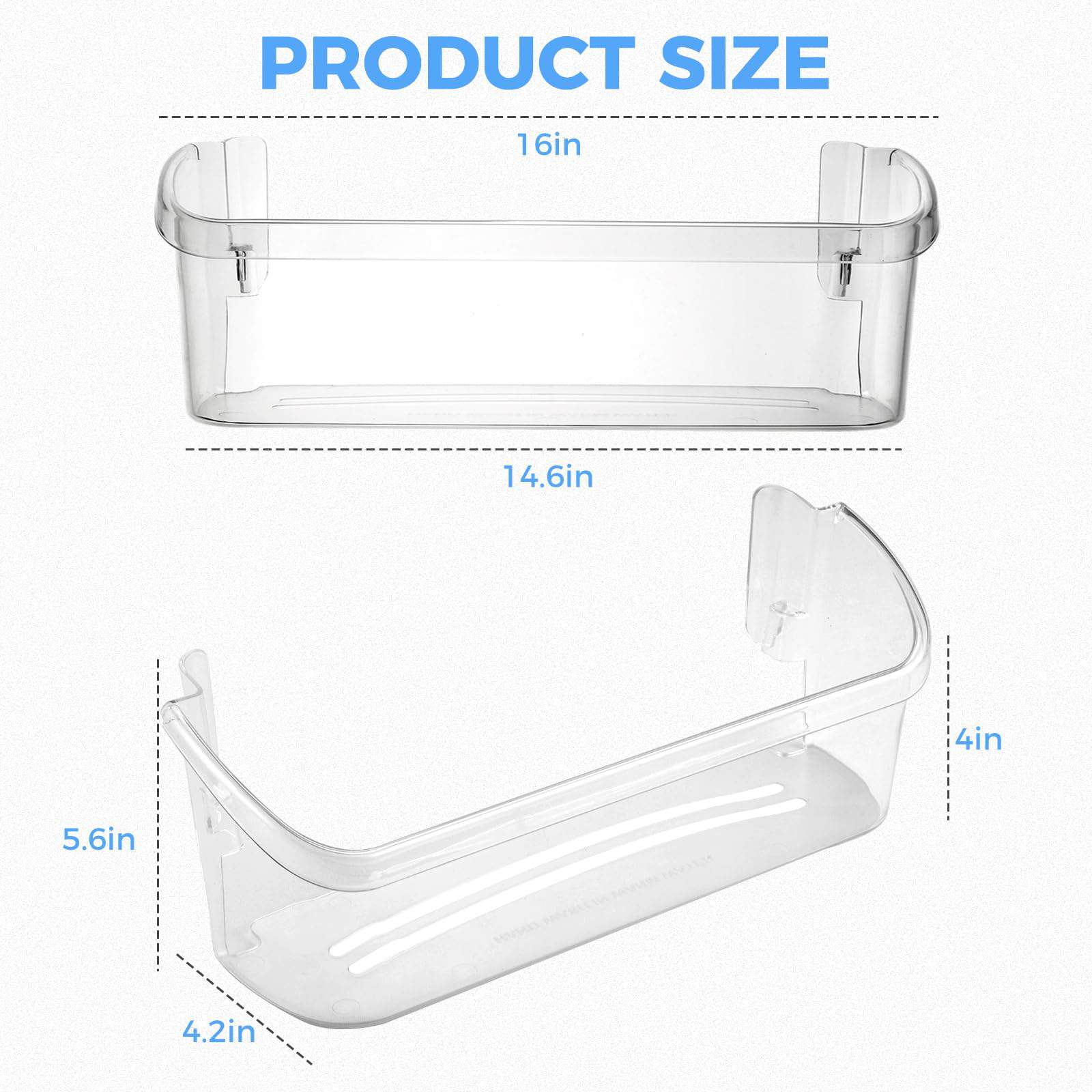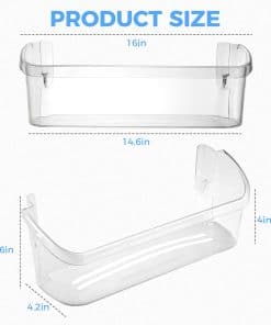1. Tamaño del producto: Repisa de puerta de refrigerador 242126602 de tamaño: L: 16″, D: 5-1/2″, H: 5-3/4″, si la dimensión está equivocada por 1/8″, no encajará en su modelo. Por favor, verifique si el número de modelo coincide antes de comprar.